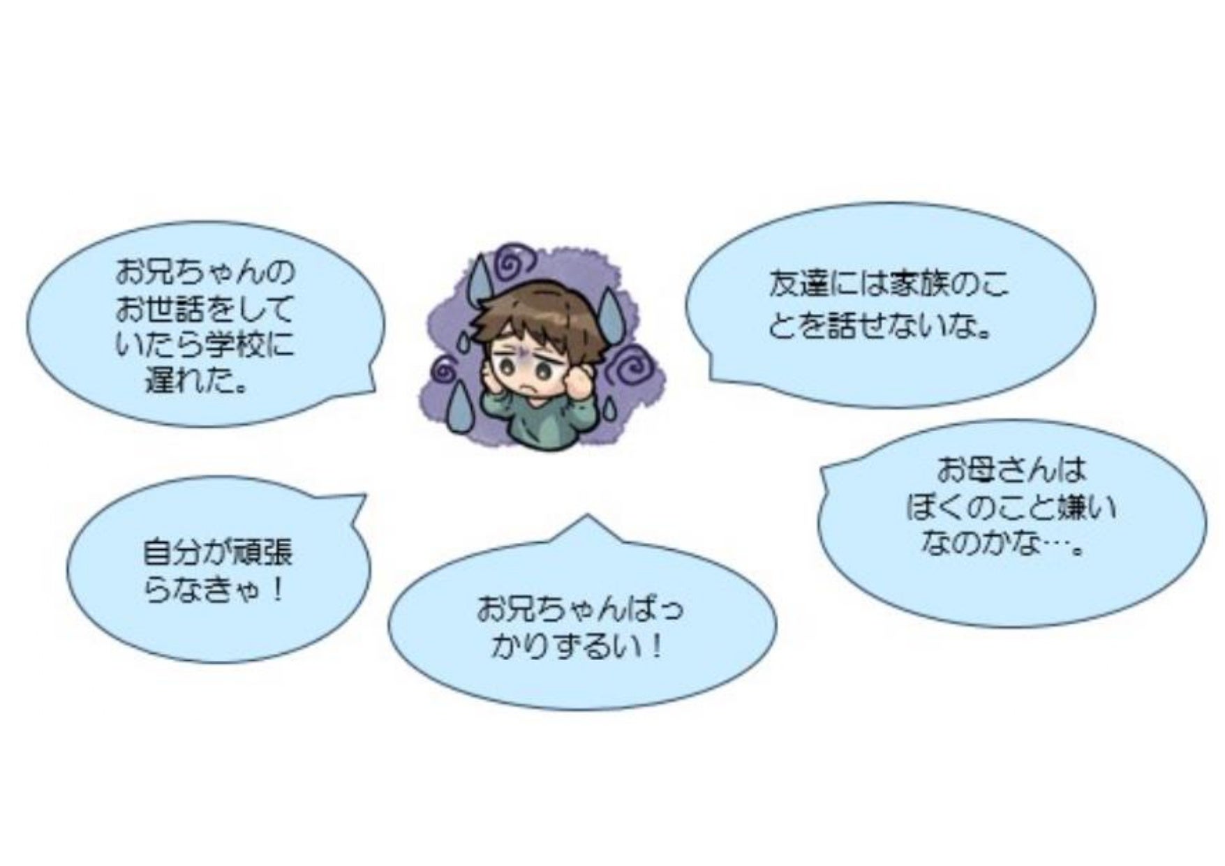 また、生育の過程で、しょうがいのある兄弟姉妹と共に暮らす環境にいますので、「障がいへの理解」があるといった肯定的側面がある一方、きょうだい本人は親亡き後、自身の生涯にわたって、しょうがいのある兄弟姉妹を支えていくことへの不安や悩みを抱えている方もいるようです。