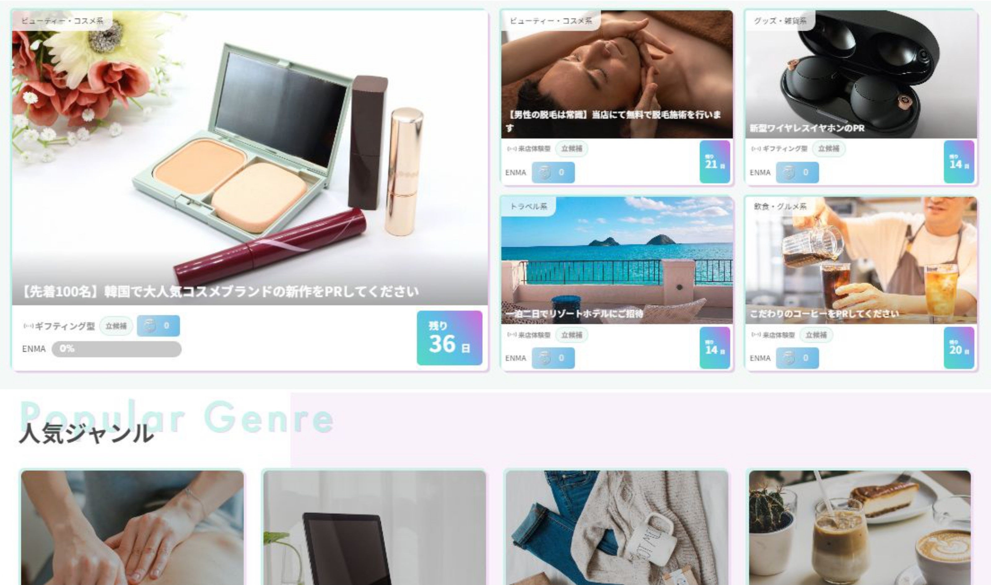 事業内容 インフルエンサーマーケティングのマッチングプラットフォーム「ENMA」の運営