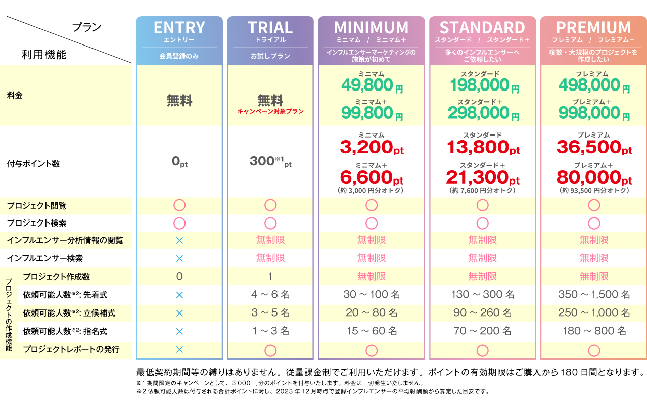 *ポイントを購入することで、インフルエンサーの検索・情報閲覧、プロジェクト作成などすべての機能が解放されます