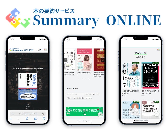 本の要約サービス「サマリーオンライン」は、ビジネス書や自己啓発本、お金、子育て、健康本など、様々なジャンルの本の要約を1冊5分程度で読むことができるサービスです。
