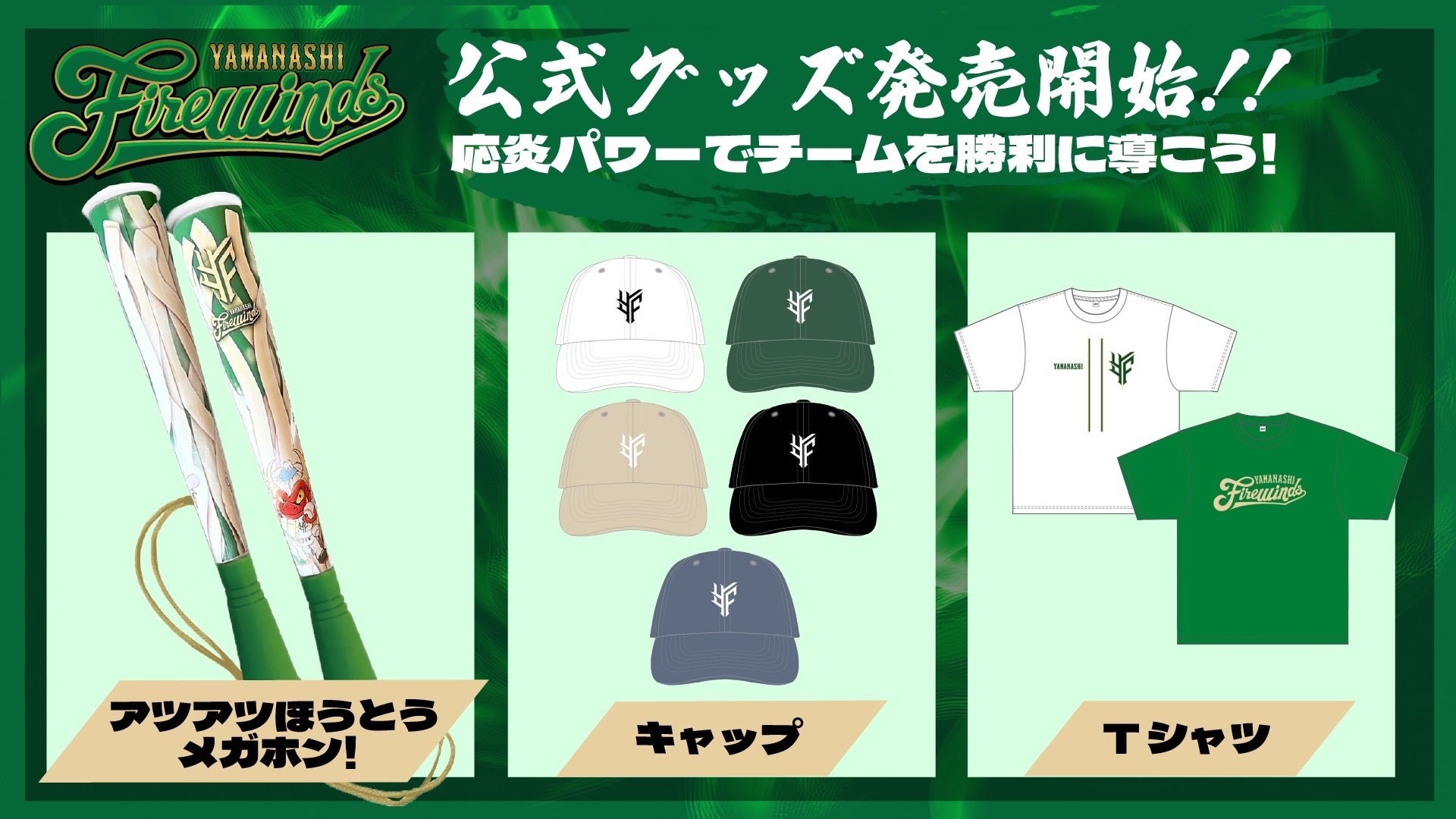 この度、2025年度ルーインBCリーグ初出陣となる⼭梨ファイアーウィンズでは、⼀緒に戦っていただけるファンの皆さまへの第1弾グッズの受注販売を開始させて頂きます。