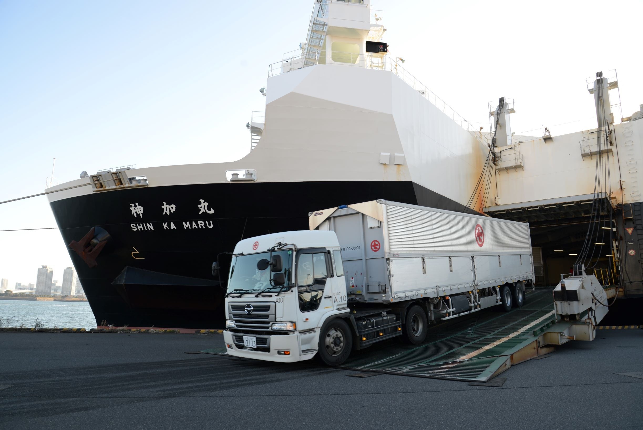 栗林商船は苫小牧、釧路、仙台、東京、清水、名古屋、大阪を結ぶ海上輸送を主事業としている内航海運会社で、7隻のRORO船(注1)と自社およびグループ各社が保有する約3300台のトレーラーを用い、トレーラーリースによる海上輸送サービスに加え、海陸一貫輸送も行っています。