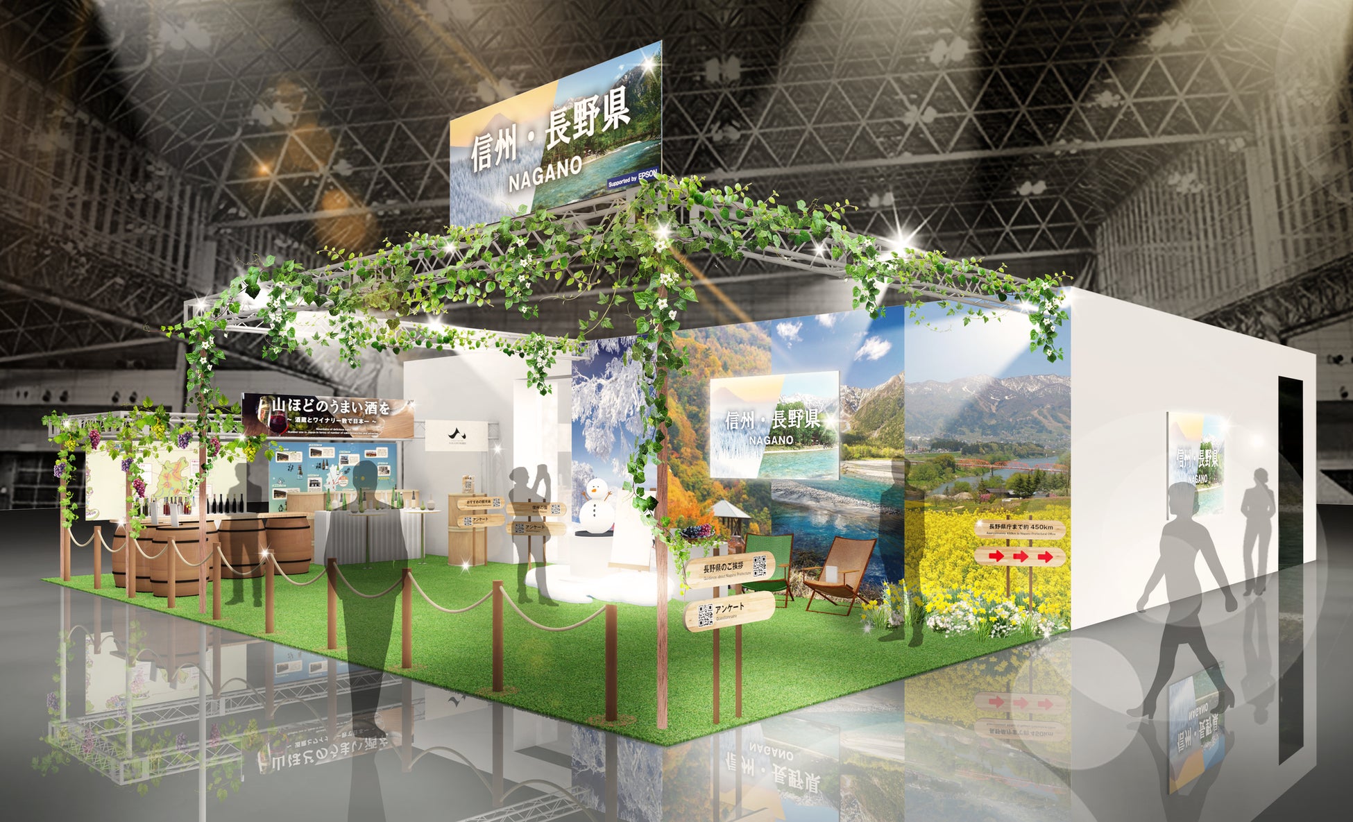 大阪・関西万博に来場する皆様へ長野県の魅力をPRするため、万博会場内に長野県PRブースを出展します。ブースでは、セイコーエプソン株式会社の協力による信州を体感できる360度のイマーシブ空間、長野県から運んだ「雪」の展示や長野県産の日本酒・ワインの試飲ができる芝生広場など、真夏の大阪で信州の魅力を五感で体験できる空間を展開します。
