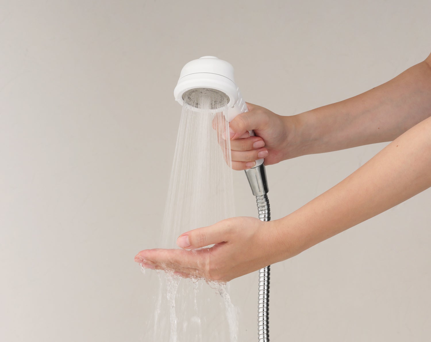 細くて心地よいシルクのような肌当たりと、増圧機能でしっかりした浴び心地が体感いただけます。
