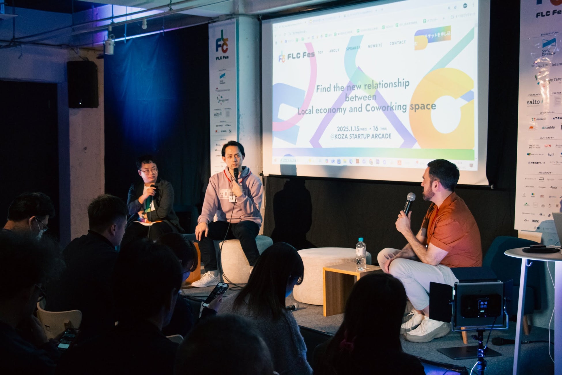 調査結果の概要については、2025年1月に沖縄で開催されたFLC Fes 2025 in Kozaにて初めて発表されました。イベント内では紹介された情報をもとに、Deskmag社 FounderのCarsten Foertsch氏、 Beyond The Community 森澤友和氏、JCCO代表理事 青木雄太によって、日本のコワーキングスペース市場に関するトークセッションも行いました。