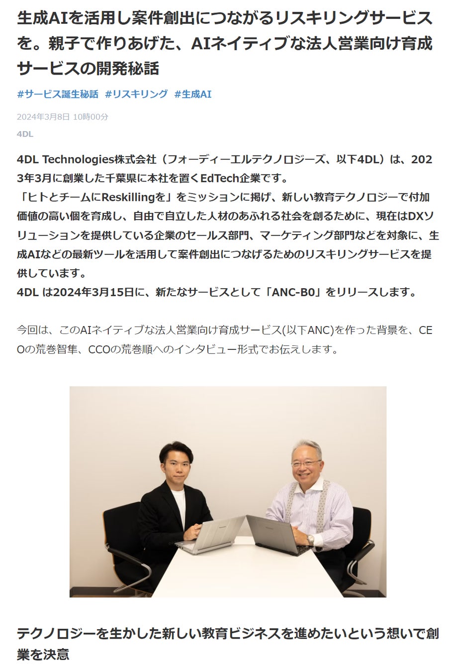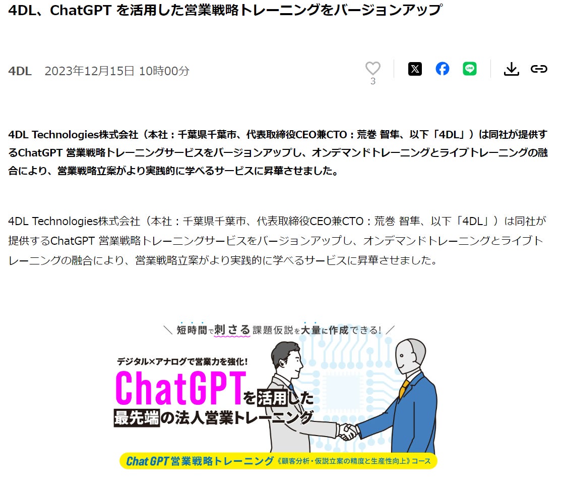 4DLはChatGPTを活用した人材育成プロダクトの開発に成功し、大手企業からも採用されています。