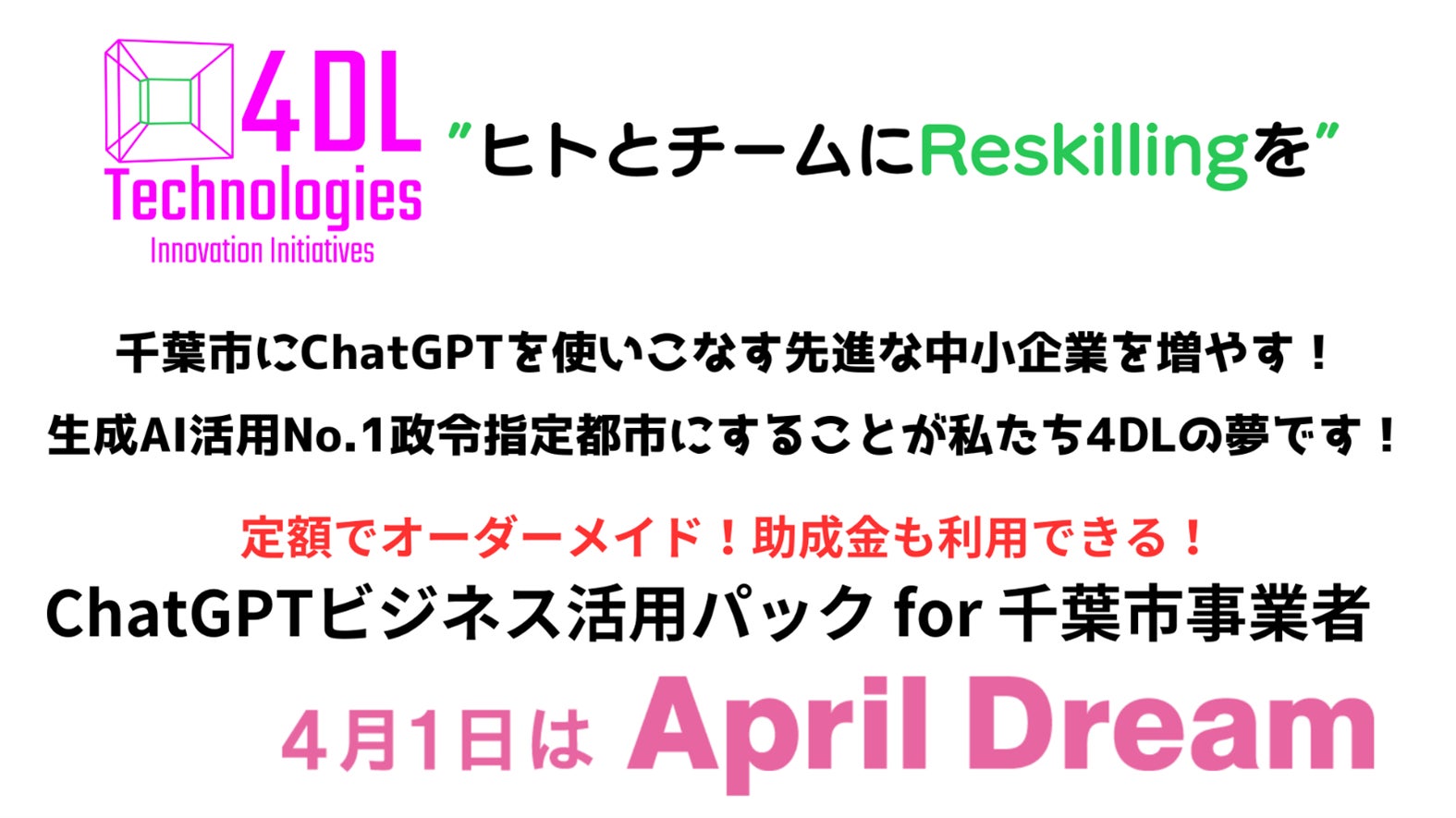 4DL 、《ChatGPTビジネス活用パック for 千葉市事業者》を2024年4月11日にスタート