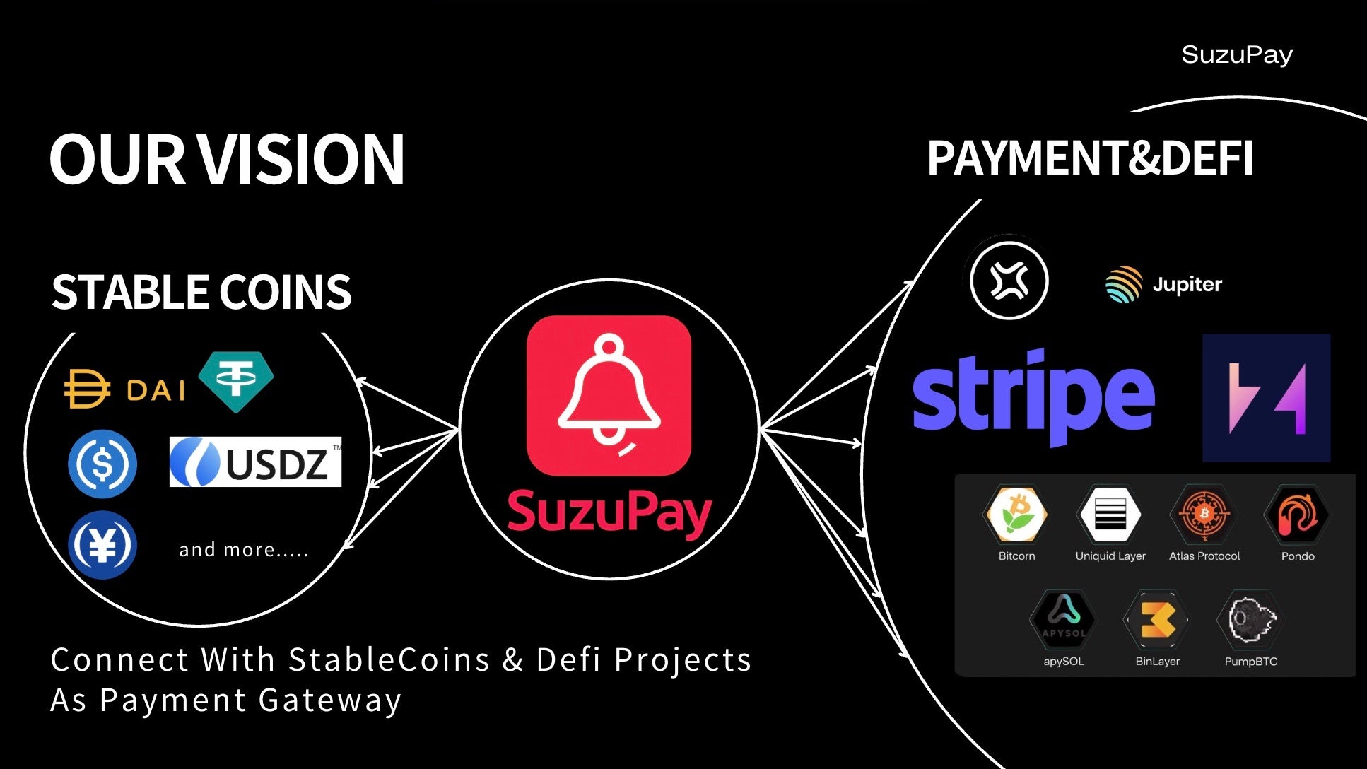 上記サービス提供にあたり、マルチチェーン対応のステーブルコイン決済ゲートウェイ「SuzuPay」とパートナーシップを締結いたしました。