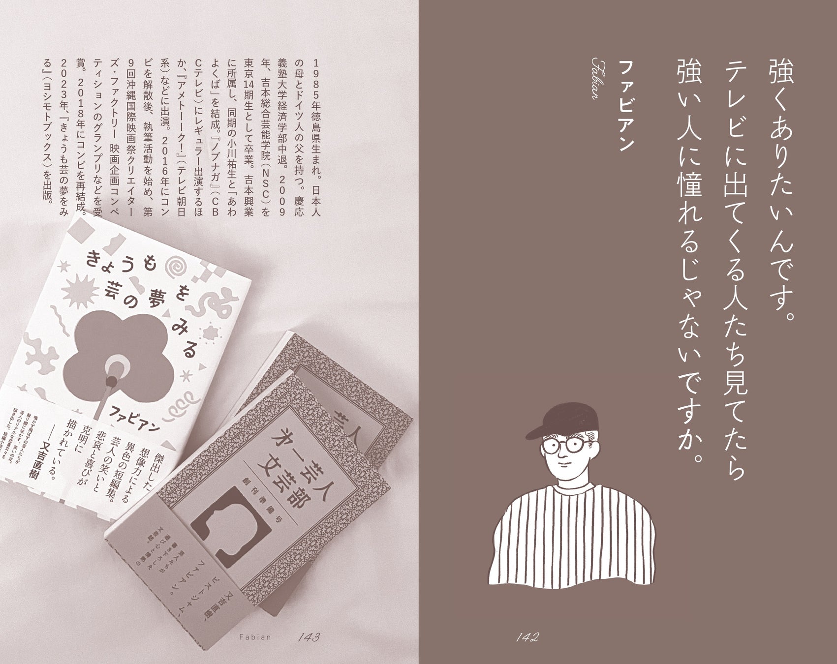 ファビアン:芸人。吉本興業の第一芸人文芸部で活動。著書はショートショート小説『きょうも芸の夢をみる』