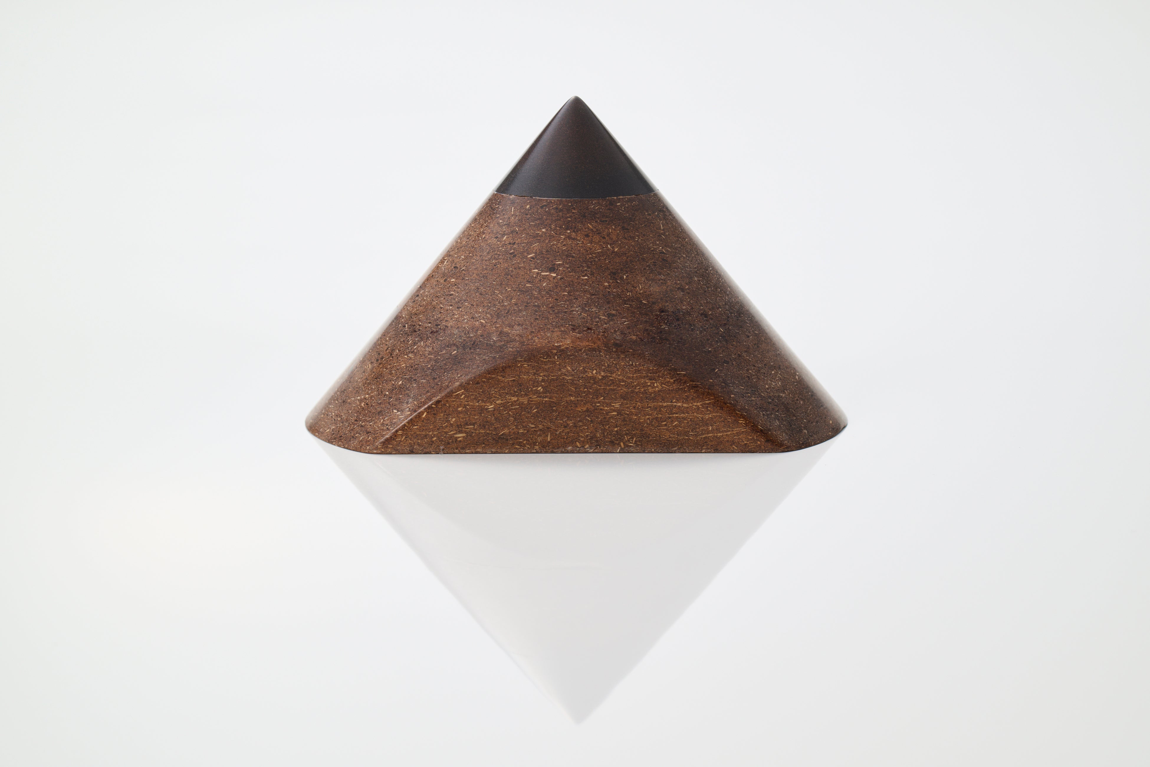 木粉と漆樹液を特許技術で混ぜ合わせて製造する原料「URCYLパウダー」。プレスで鋳造成形する事によって完成させる製品は、ABS 樹脂と同等程度の物理的強度を持ち、抗菌性・抗ウイルス性、耐熱性を備えています。昨今の脱炭素社会の中で、素材に一切石油由来原料を使用しないだけでなく、漆本来の耐久性が加わり、金属でもプラスチックでもない”第3の素材”として東京都立産業技術研究センターと約20年にわたる共同研究を経て開発・完成しました。