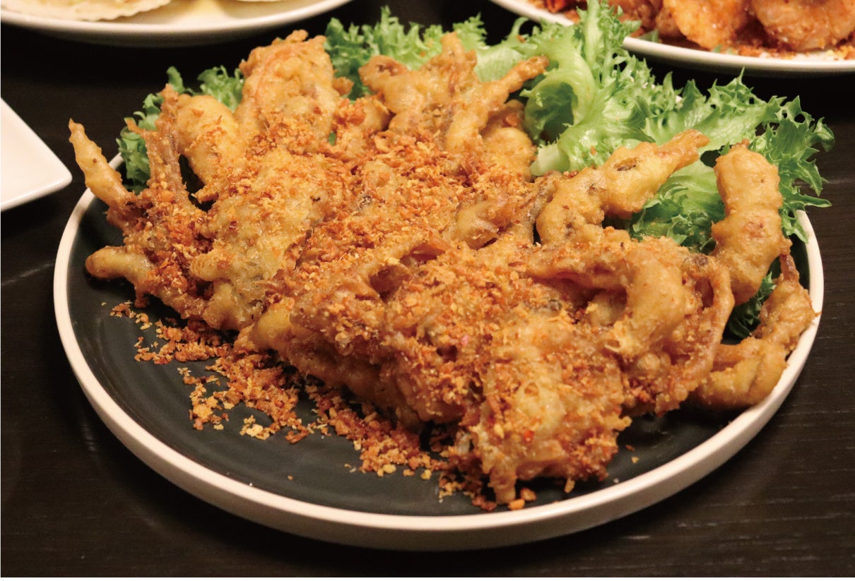 ソフトシェルクラブは、殻ごと食べられる食感がクセになる一品です。チリガーリック粉をまぶし更に香ばしく仕上げられるため、食べ応えがあります。是非ご家族やご友人とシェアしてお楽しみください。