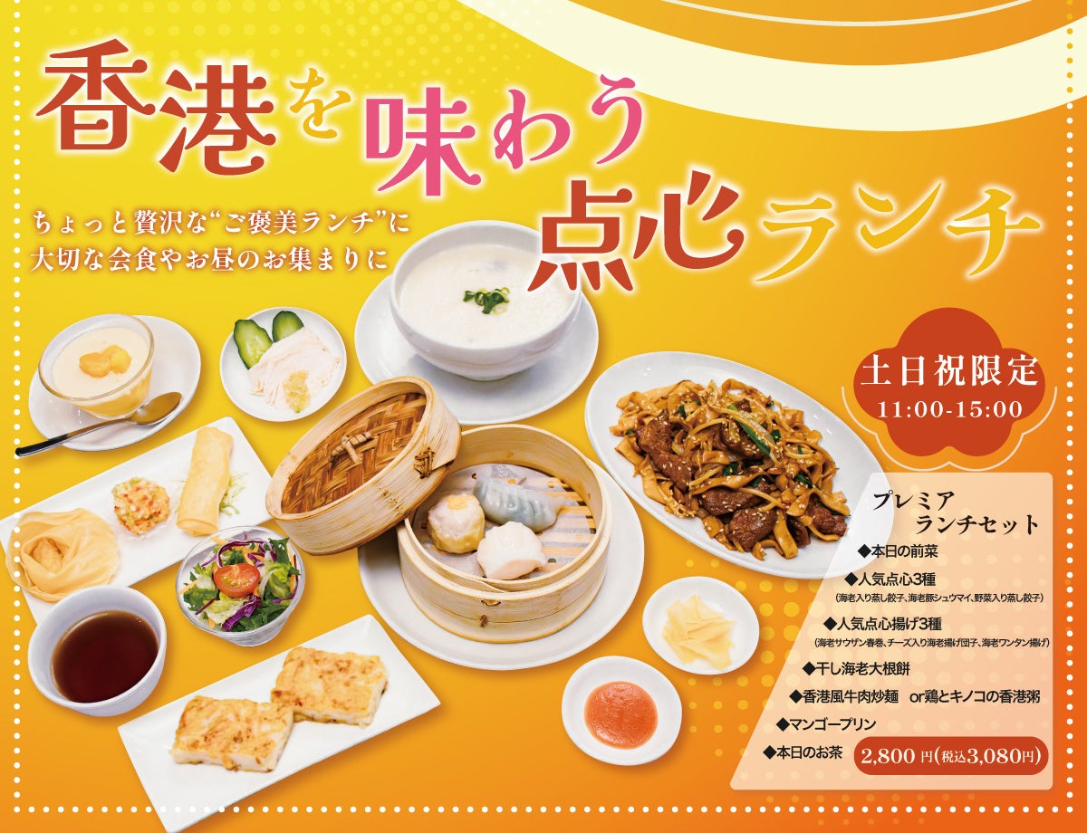 ■海⽼⼊り蒸し餃⼦(6P)¥1,253(税込) ■ 海⽼豚焼売(6P)¥1,037(税込) ■ ⼲し海⽼⼤根餅(4P)¥1,037(税込) ■ 蓮の葉ちまき(1P)¥950(税込) ■ 海鮮と海⽼の⾹港粥 ¥1,382(税込) ■ 鶏とキノコの⾹港粥 ¥734(税込)■ 塩豚とピータンの⾹港粥 ¥626(税込) ■⿃⾜醤油ソース蒸し ¥626(税込) ■⾹港⾵⽜⾁炒麺 ¥1,058(税込)■ローストポーク丼 ¥950(税込) ■マーライコウ ¥518(税込) ■チャーシューパオ(1個) ¥367(税込) ■⾹港⾵カスタード饅(1個) ¥302(税込)