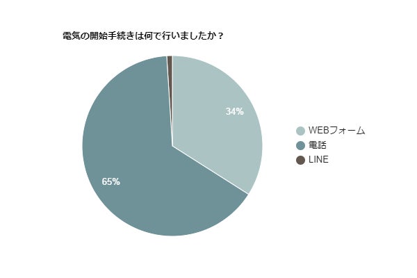電気の開始手続きを何で行ったかの問いについて、65%が「電話」と回答しました。
