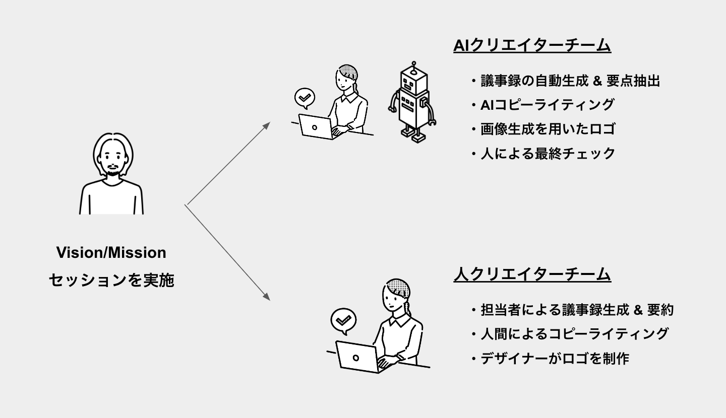「QuackShiftのビジョン・ミッション」を題材に、「人クリエイターとAIクリエイター」のブランディングで、簡易コンペティションを実施します。