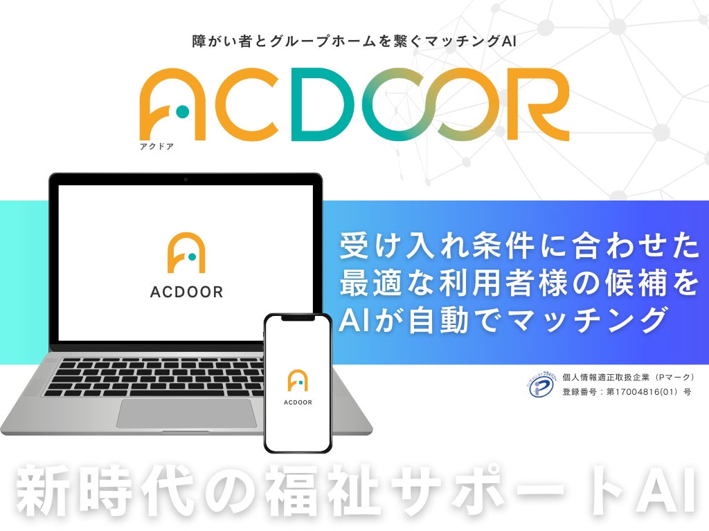 「ACDOOR」は、先進のAI技術と信頼性の高い支援ネットワークを融合することで、障がい者とそのご家族、一人ひとりが安心して自立し社会参加を果たせる未来の実現を目指しています。