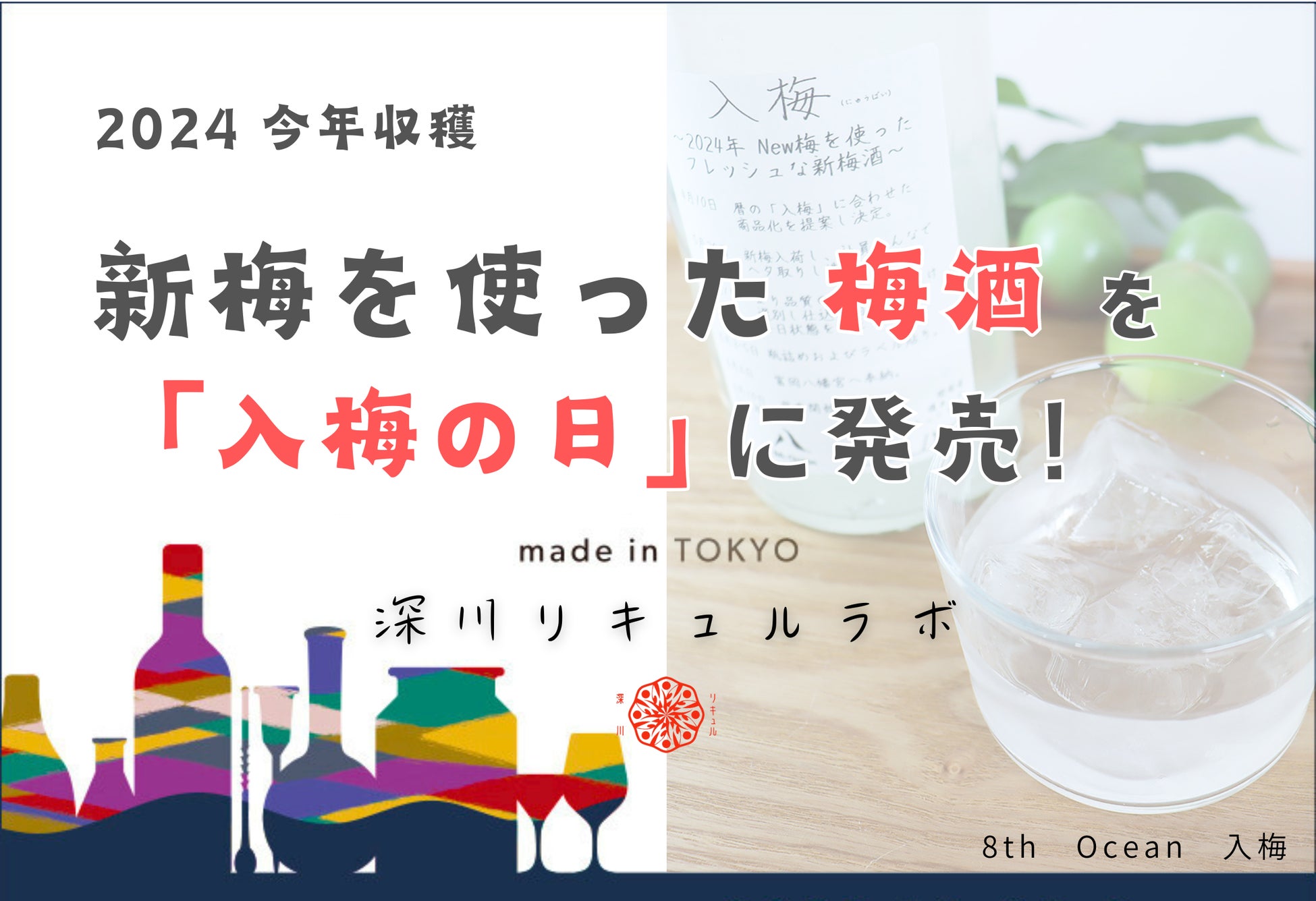 株式会社海琳堂が運営する東京下町のクラフトリキュール製造所『深川リキュルラボ』(東京都 江東区)より、入梅の日に合わせた梅酒の新酒「8th Ocean 入梅」(えいすおーしゃん にゅうばい)が発売開始となります。新梅を使った梅酒としては異例の早期リリース。更に神社奉納も行った縁起酒です。|ご予約受付中|6月7日午前までのご注文で、入梅の日にお届けします。東京下町のリキュール製造所「深川リキュルラボ」より、第2弾となる新商品のご案内です。