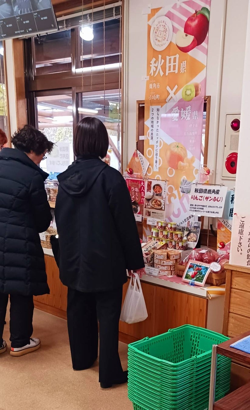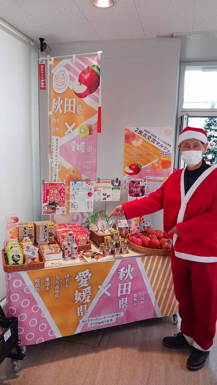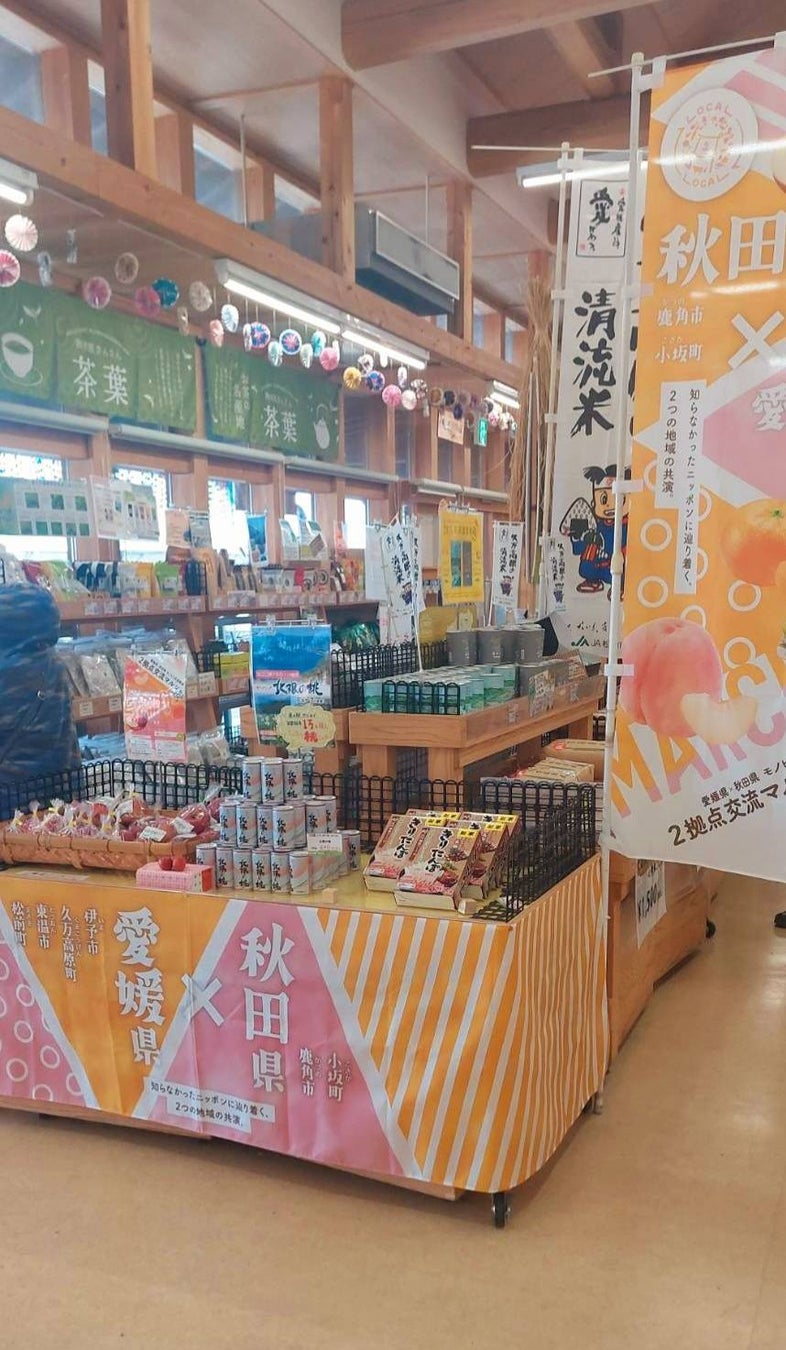 秋田県の新鮮なリンゴやおいしいお米、名産品「いぶりがっこ」に「きりたんぽ」が、愛媛県伊予市とその周辺市町にある道の駅などの交流拠点で購入できます!