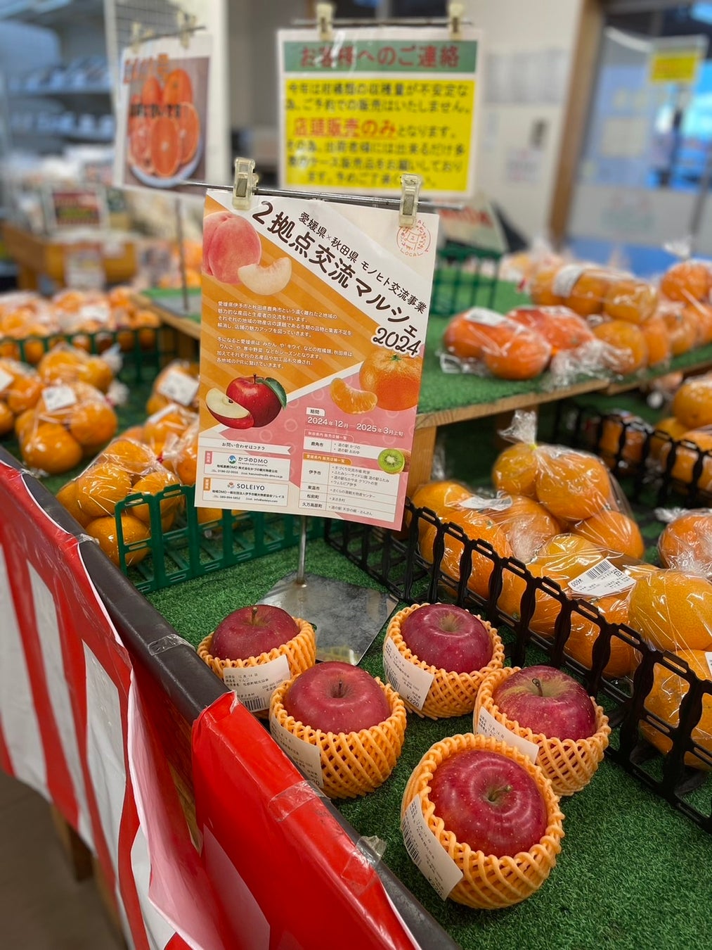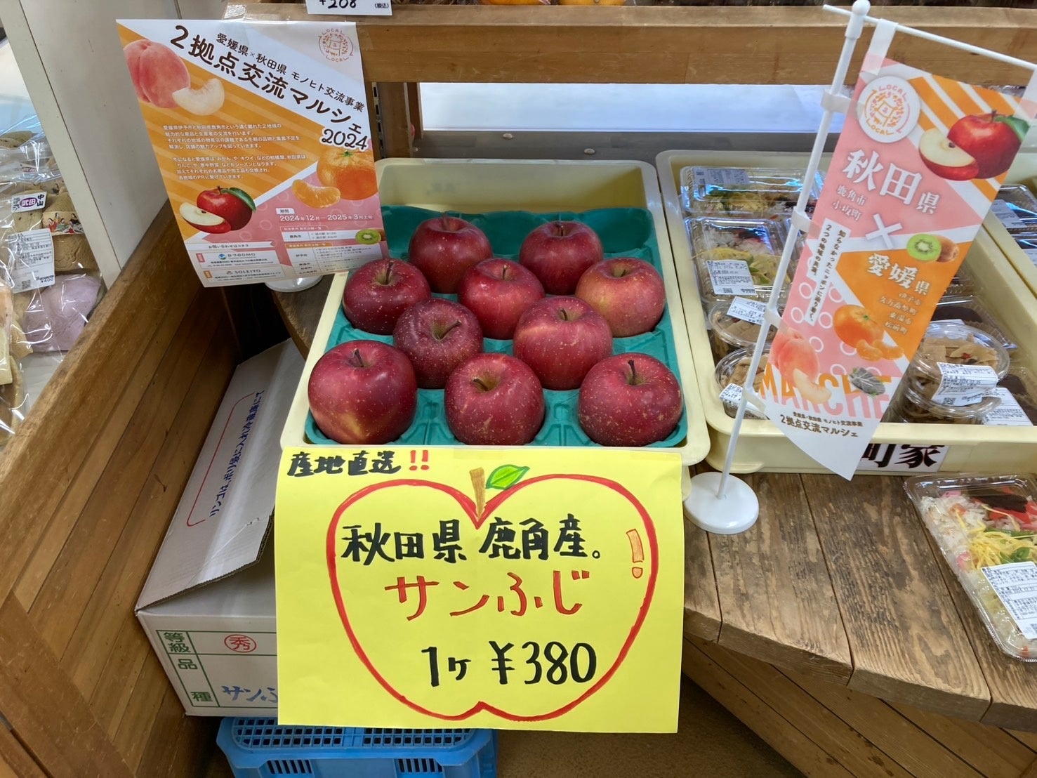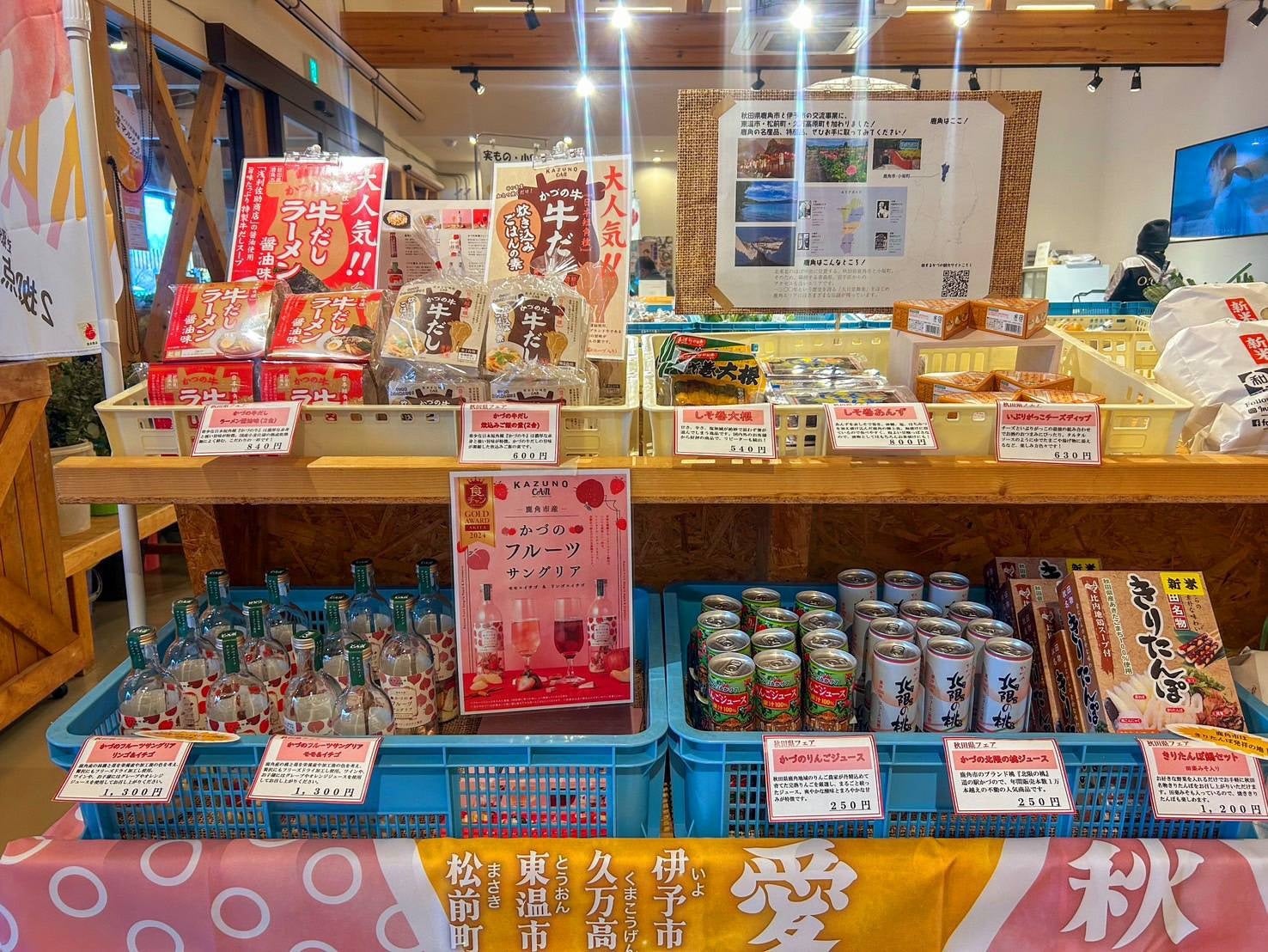 秋田県の新鮮なリンゴやおいしいお米、名産品「いぶりがっこ」に「きりたんぽ」が、愛媛県伊予市とその周辺市町にある道の駅などの交流拠点で購入できます!