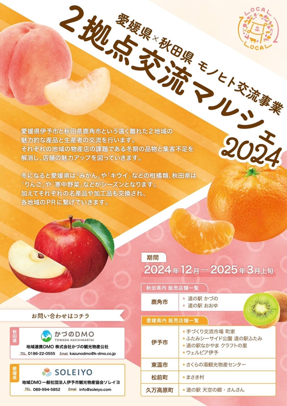 「2拠点交流マルシェ」の取り扱い商品に関するお問い合わせは、各店舗へお問い合わせください。