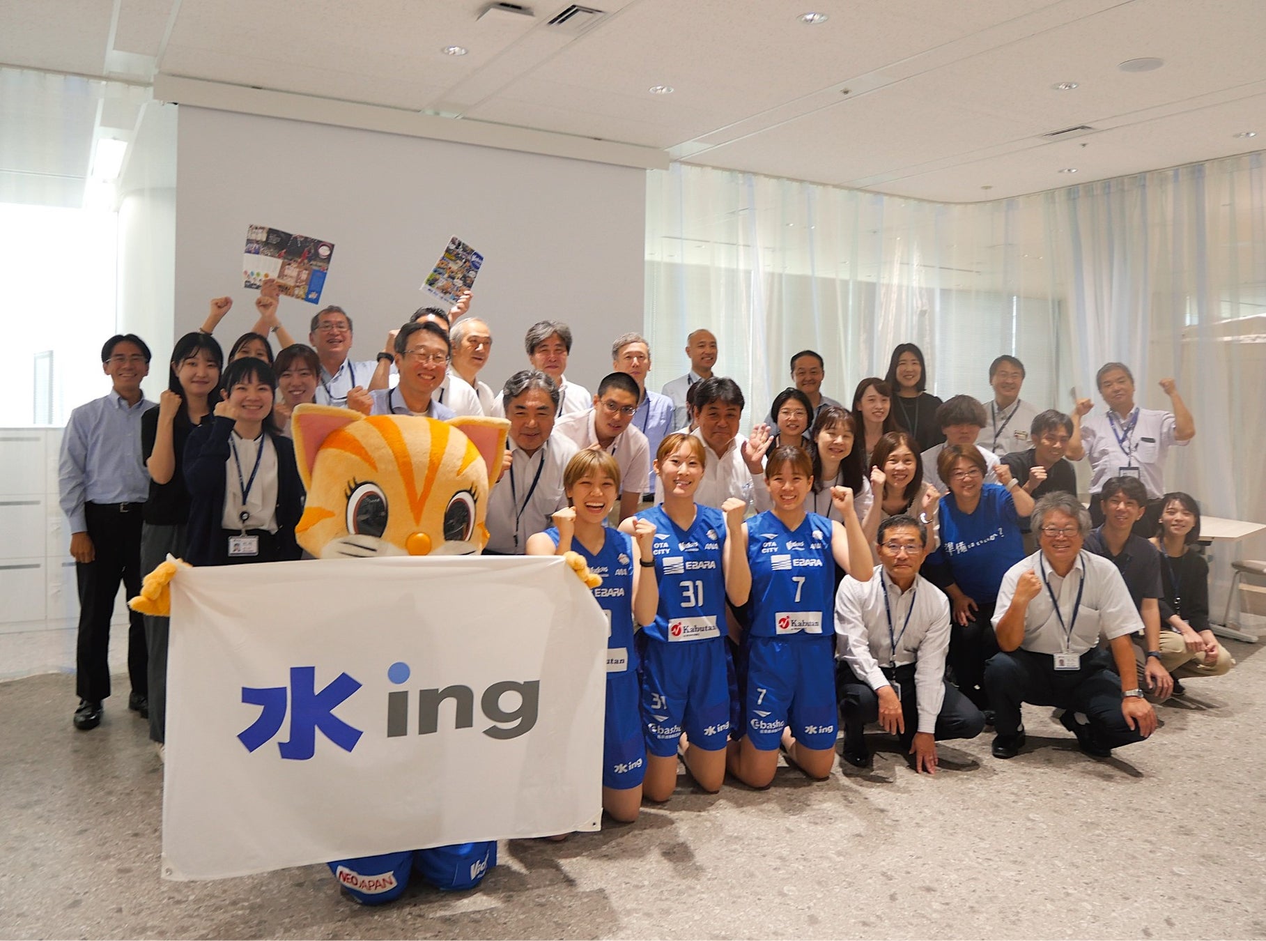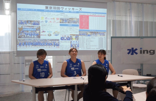 水ing株式会社(社長︓安田真規、本社︓東京都港区)は2024年7月25日、汐留本社において、バスケットボール女子日本リーグ 2 部の「W リーグフューチャー」に所属する東京羽田ヴィッキーズ(代表理事︓小松篤夫、本社︓東京都大田区)の選手3名を招待し、交流イベントを開催しました。