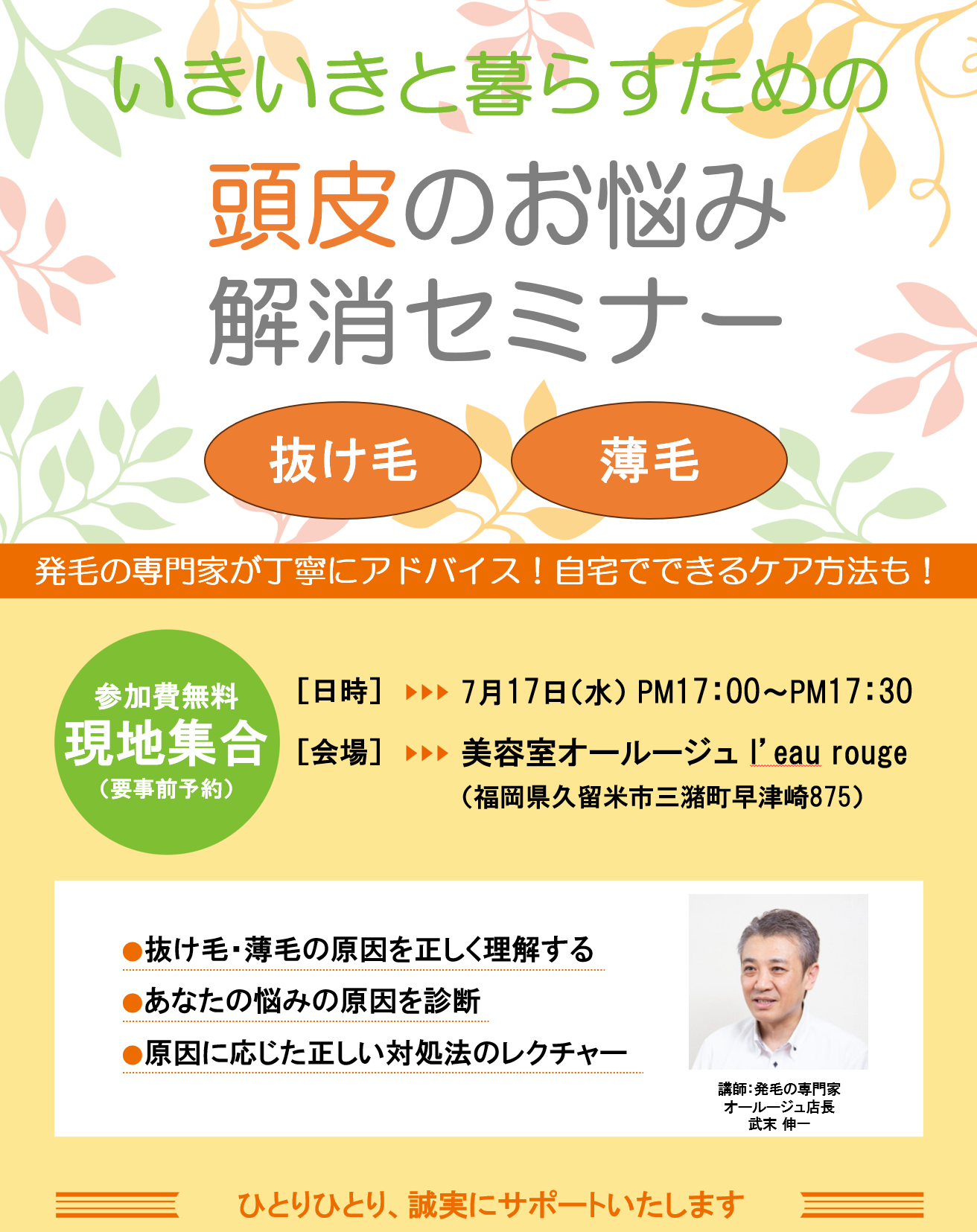 いきいきと暮らすための 頭皮のお悩み解消セミナー(抜け毛・薄毛)