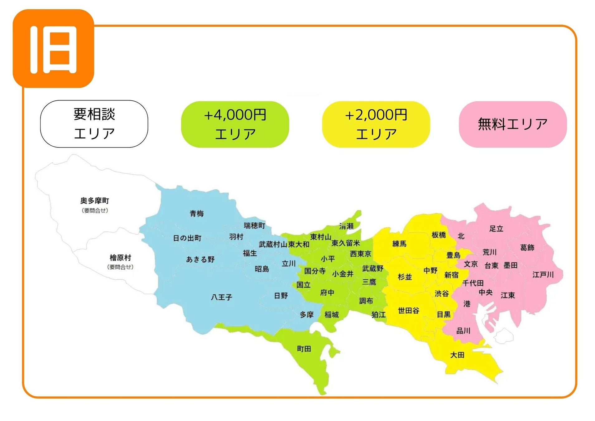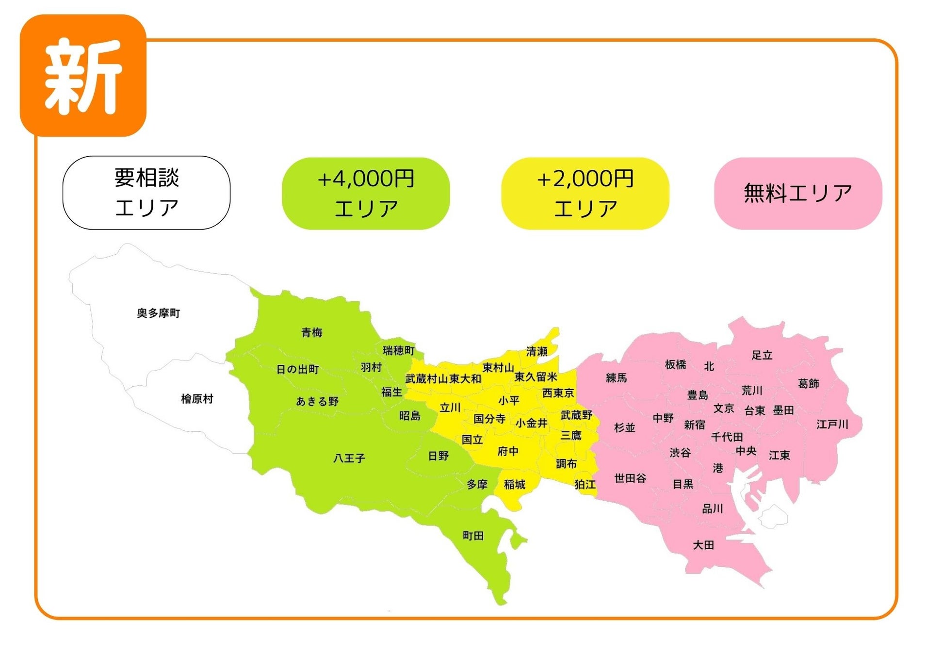 この度、東京都内のフランチャイズパートナー増大に伴い、無料エリアの拡大と有料エリアの値下げをします。23区は全区無料配送エリアになり、三鷹市や武蔵野市・西東京市など他のエリアもほぼ全エリアにてプライスダウンとなります。(https://gogo-monthly-rentacar.com/area-tokyo/)