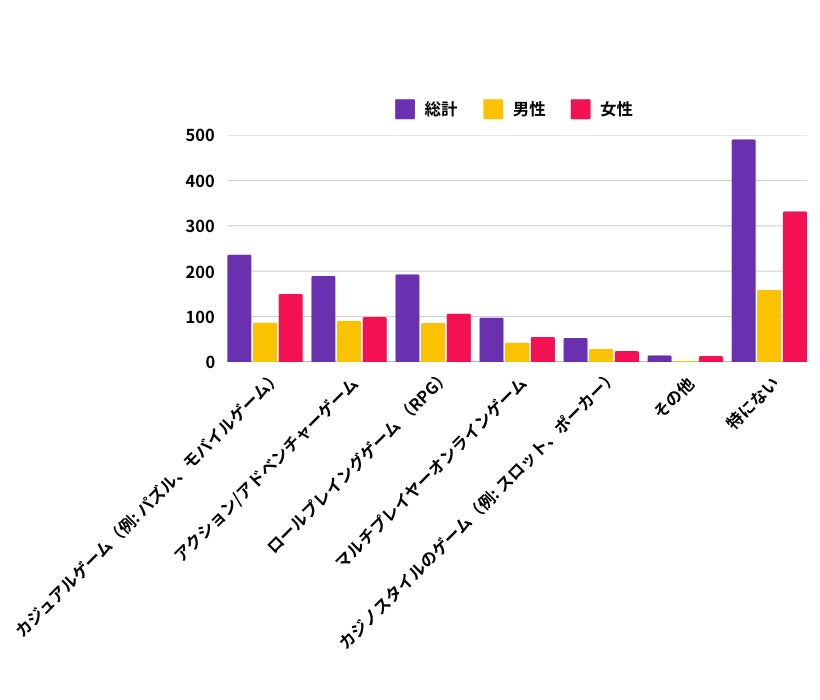 パズルなどのカジュアルゲームが最も人気のある選択肢で、次いでアクション・アドベンチャーやRPGが続いています。