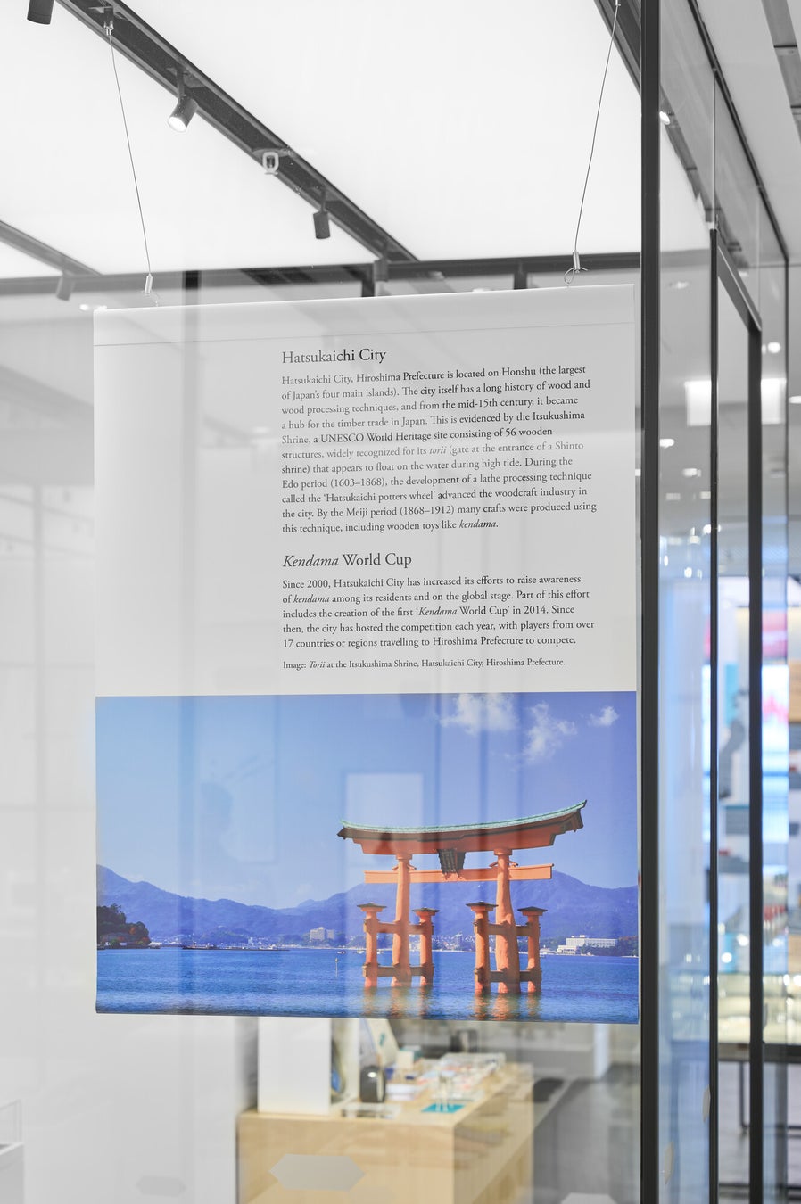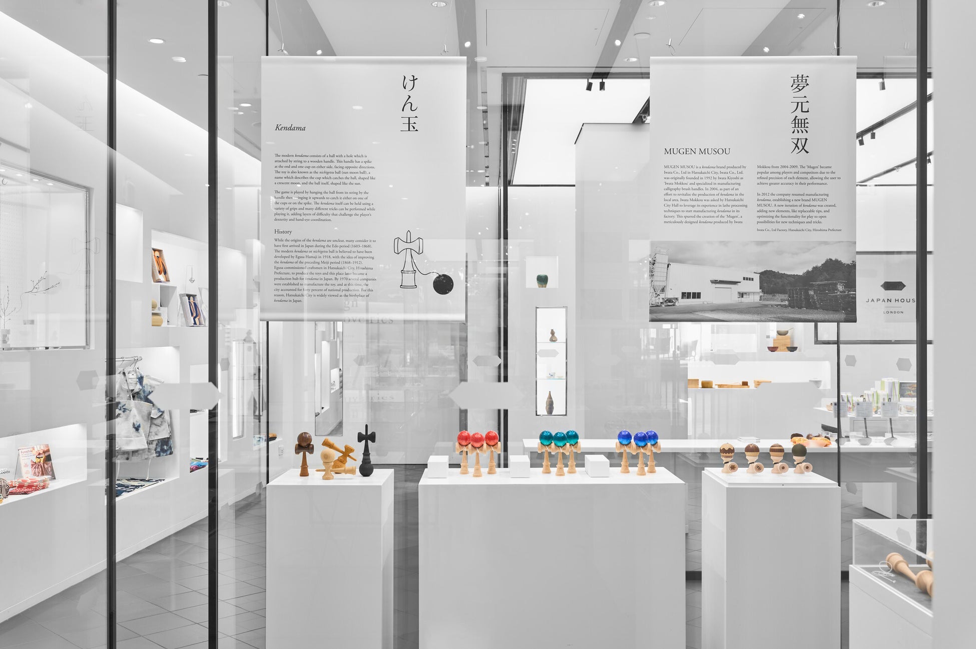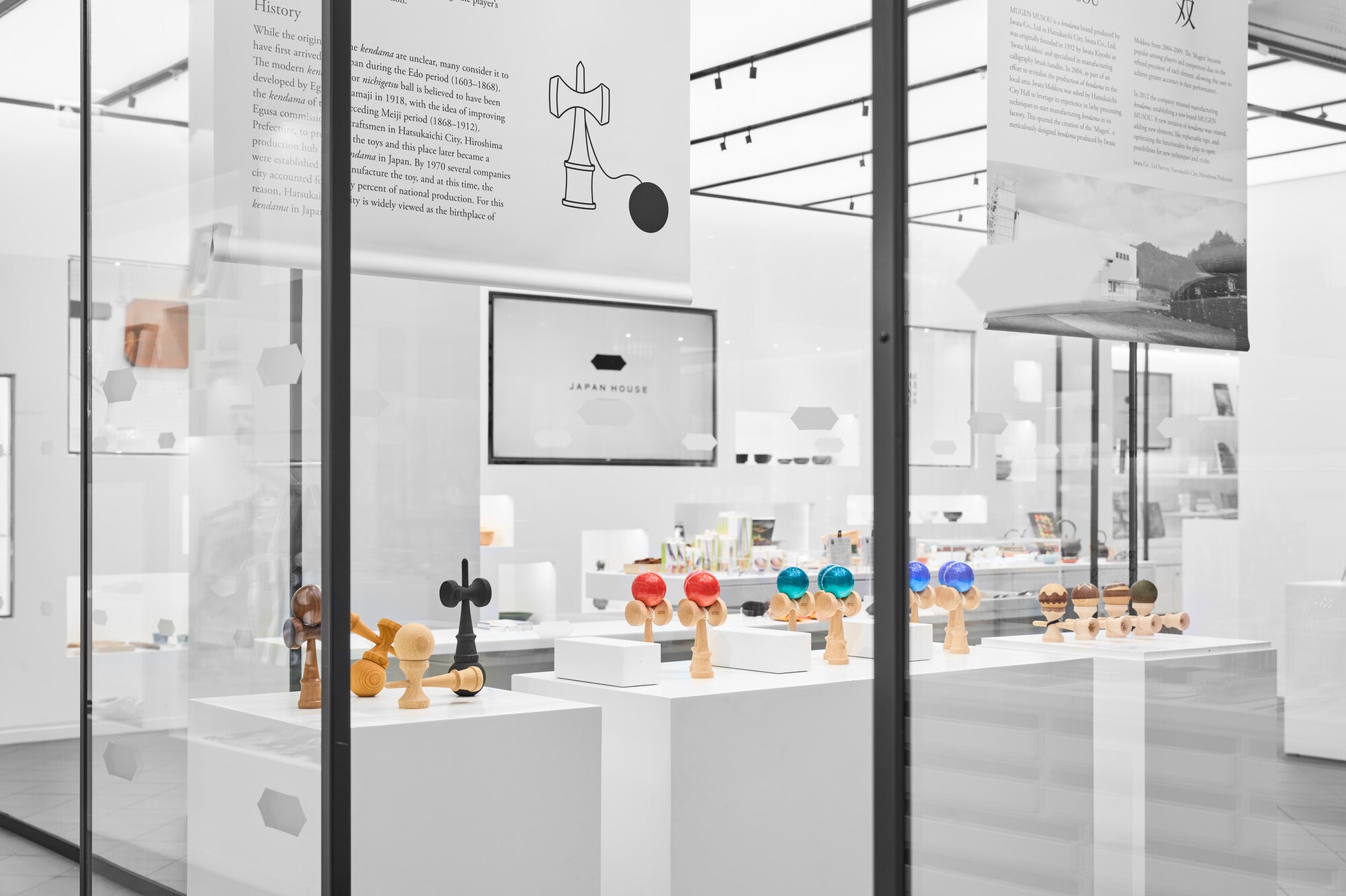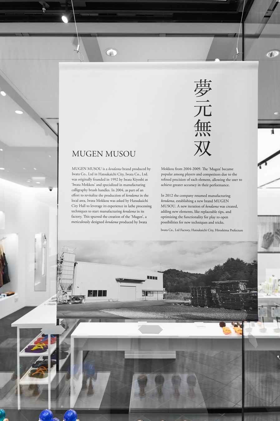 MUGEN MUSOUの「Hiroshima Like」シリーズの販売を中心に、廿日市市とけん玉の歴史、現代のスポーツ・オブジェとして進化したけん玉、製造過程の紹介などをご覧頂けます。またけん玉体験も行って頂けます。