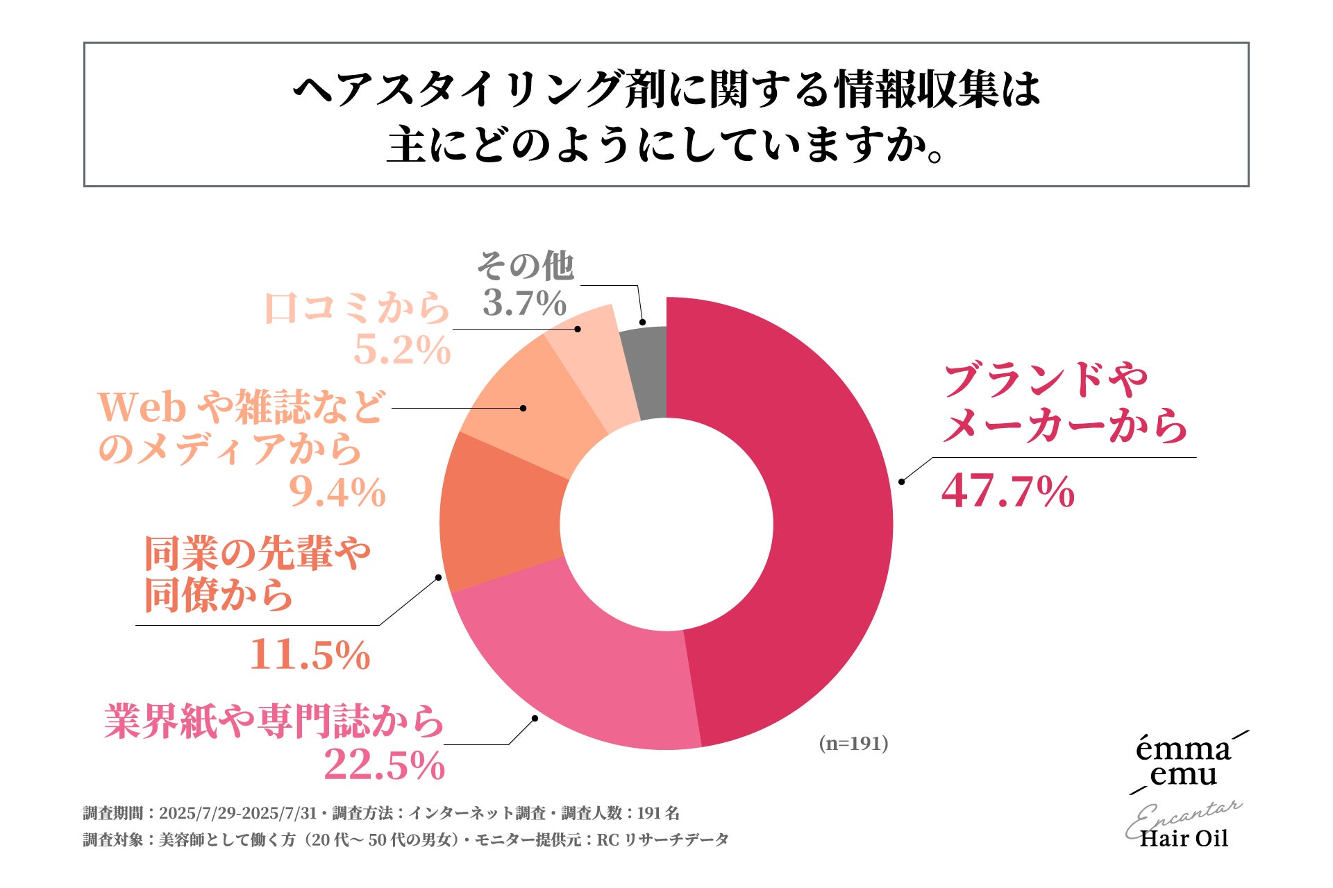 美容師の5割弱が、ヘアスタイリング剤に関する情報収集を「ブランドやメーカーから」している