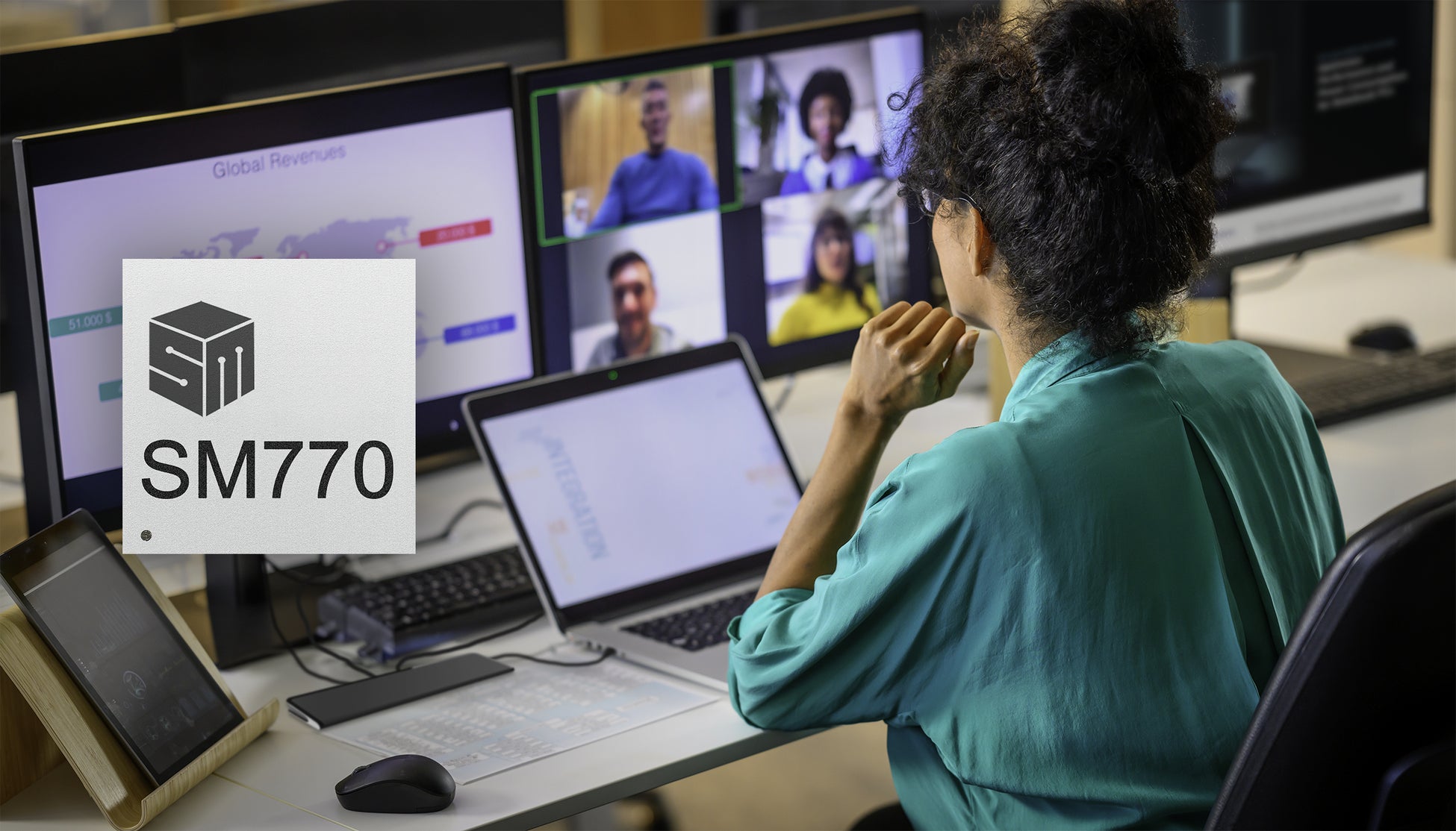 SM770は、3台までの4K 60 Hz UHDディスプレイと最大144 Hzのディスプレイをサポート。ノートPCとの柔軟な接続が可能で、商業用途、シェアオフィスのユーザー、ゲーマーに最適です。