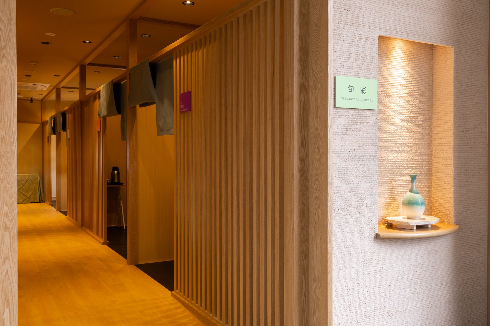 また新設した客室利用の方専用の食事処「旬彩」を新たに新設。すべての席に間仕切りを設置し半個室の空間でゆっくりとお食事をお楽しみいただけます。