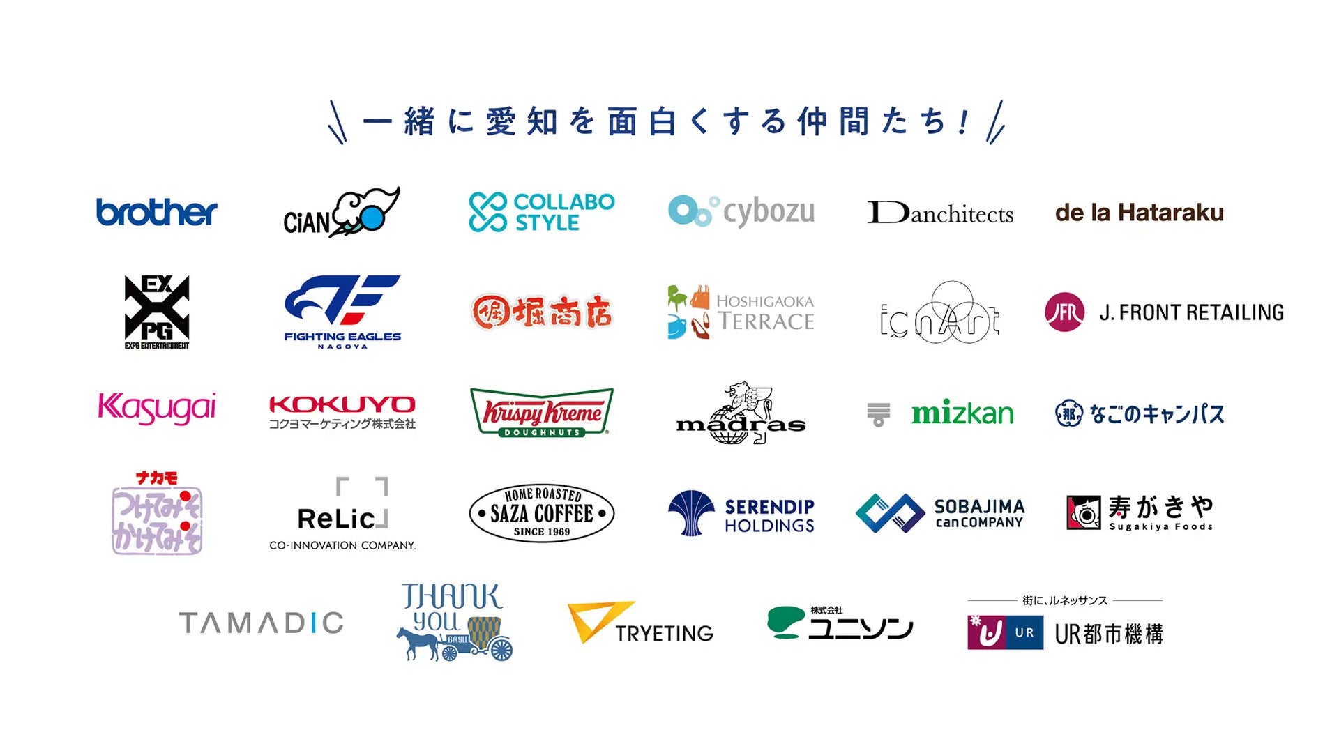 ブラザー工業株式会社、株式会社シアン、株式会社コラボスタイル、サイボウズ株式会社、ダンチテクツ、株式会社de la hataraku、EXPG STUDIO NAGOYA、豊通ファイティングイーグルス株式会社、東山遊園株式会社、株式会社堀商店、株式会社ignArt、J.フロント リテイリング株式会社、春日井製菓株式会社、コクヨマーケティング株式会社、クリスピー・クリーム・ドーナツ・ジャパン株式会社、マドラス株式会社、株式会社Mizkan、なごのキャンパス、ナカモ株式会社、株式会社Relic、株式会社サザコーヒー、セレンディップ・ホールディングス株式会社、側島製罐株式会社、寿がきや食品株式会社、株式会社タマディック、株式会社サンテフレスコ、株式会社トライエッティング、株式会社ユニソン、独立行政法人都市再生機構