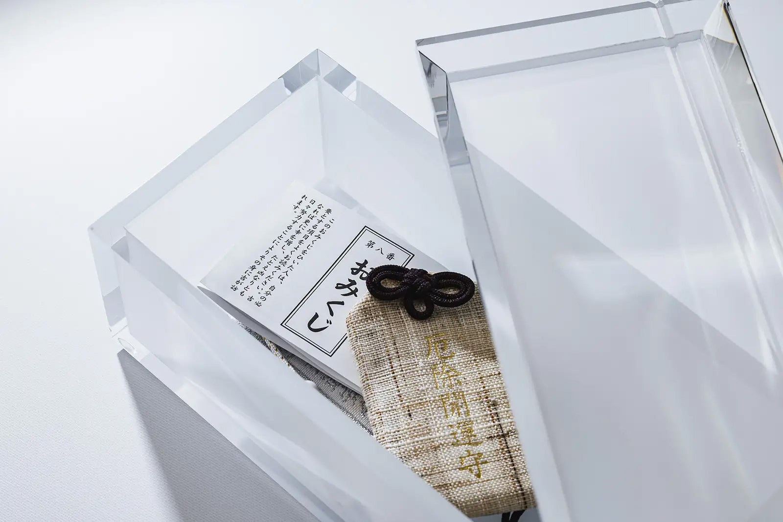 神さまの光箱は「置き場所に悩む&神棚にそのまま並べていたお守りやおみくじをすっきり飾りたい」という声から生まれました。