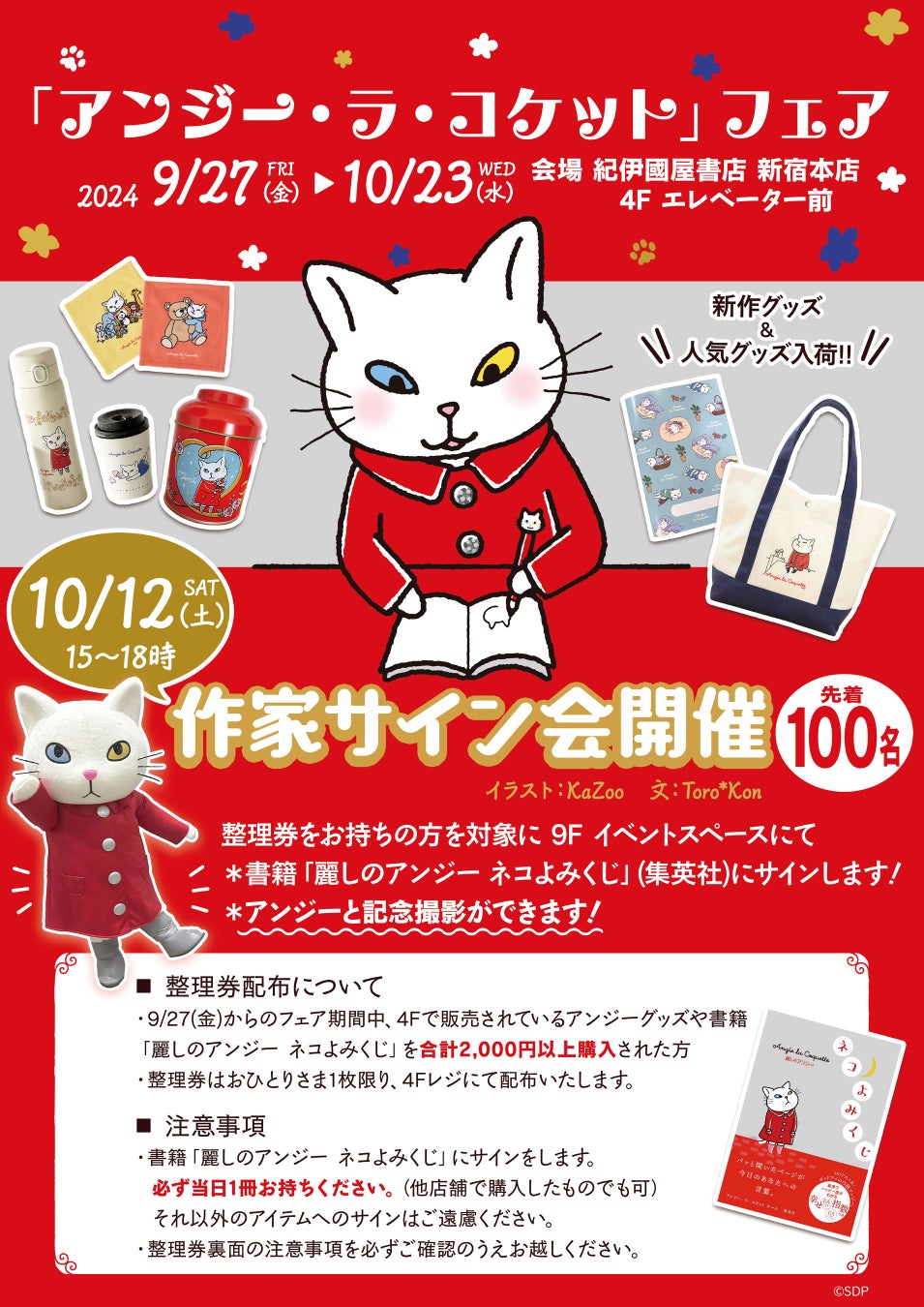 SNS で大注目の白猫のキャラクター「アンジー・ラ・コケット☆麗しのアンジー」のポップアップフェアが、2024 年 9 月 27 日から紀伊國屋書店 新宿本店でスタート!