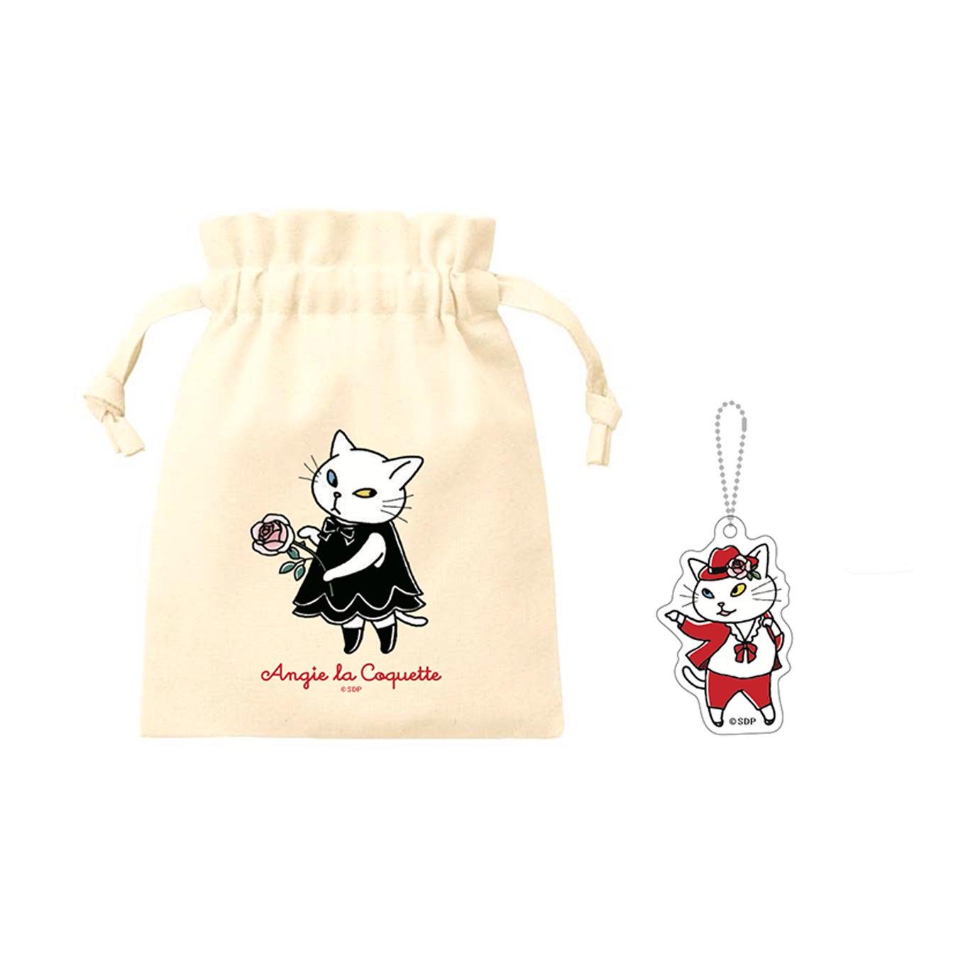 バラがチャームポイントの赤い衣装を着たアンジーのアクリルチャームがついたミニサイズの巾