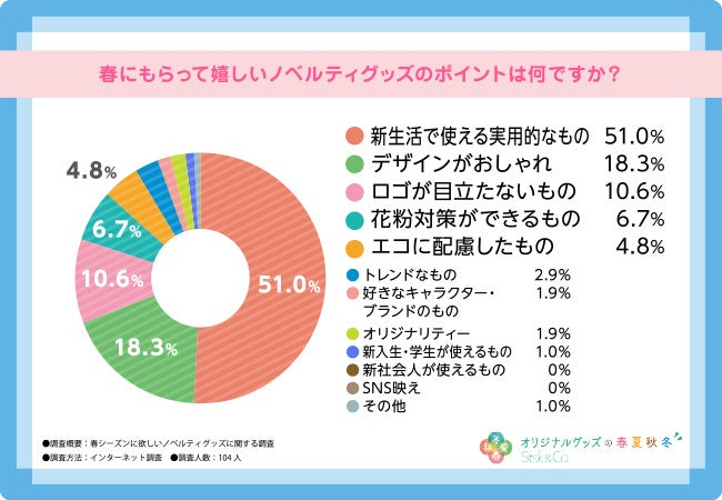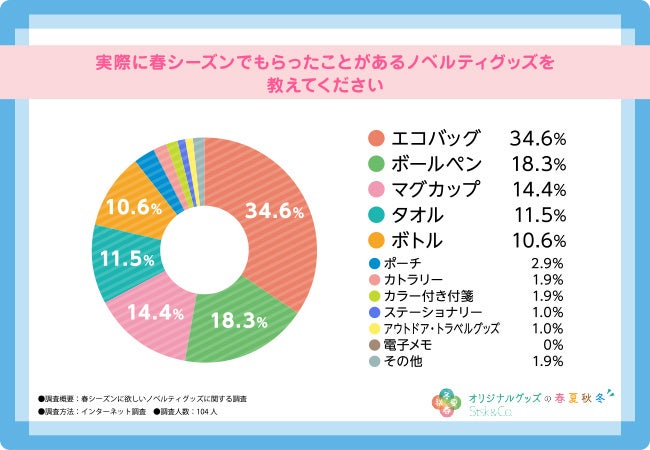 そこで今回、オリジナルグッズの春夏秋冬(株式会社秋冬春夏https://www.s-t-s-k.com/)は、全国20〜60代の男女104名を対象に「春シーズンに欲しいノベルティグッズ」に関する調査を実施しました。