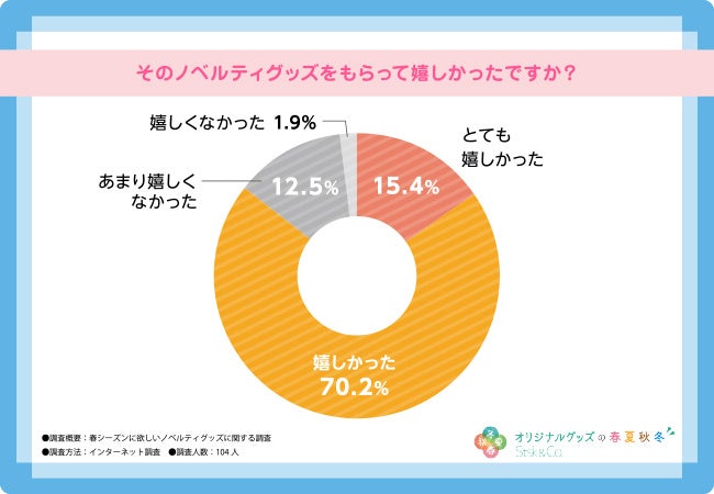 8割以上の方が、ノベルティグッズをもらって『嬉しかった』と回答しており、春シーズンとの相性の良さが見受けられます。