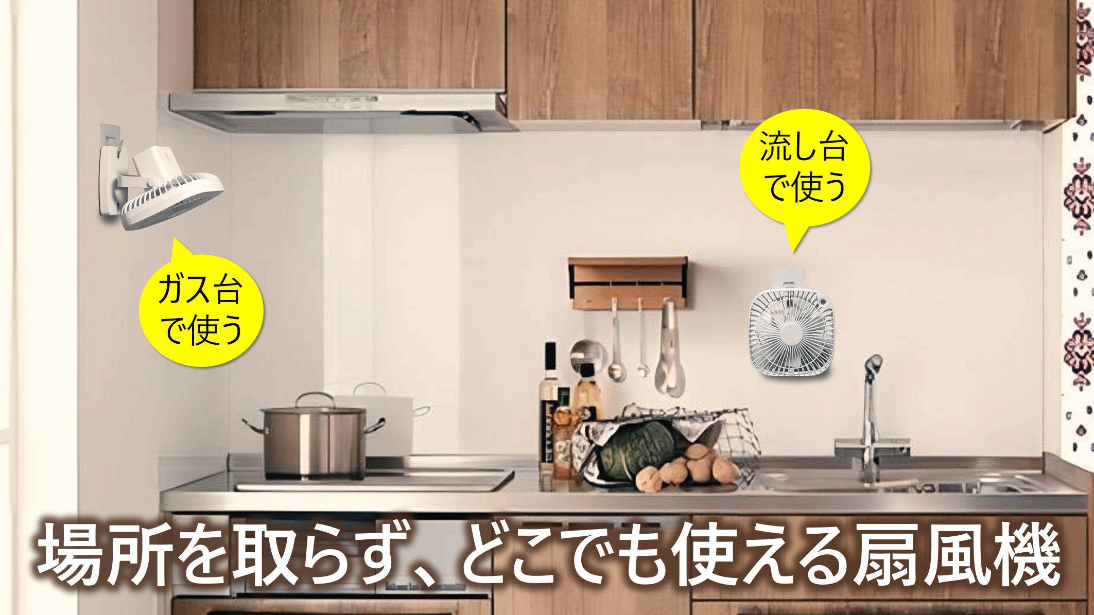 扇風機は着脱が簡単で、一台でさまざまな場所で使えます。