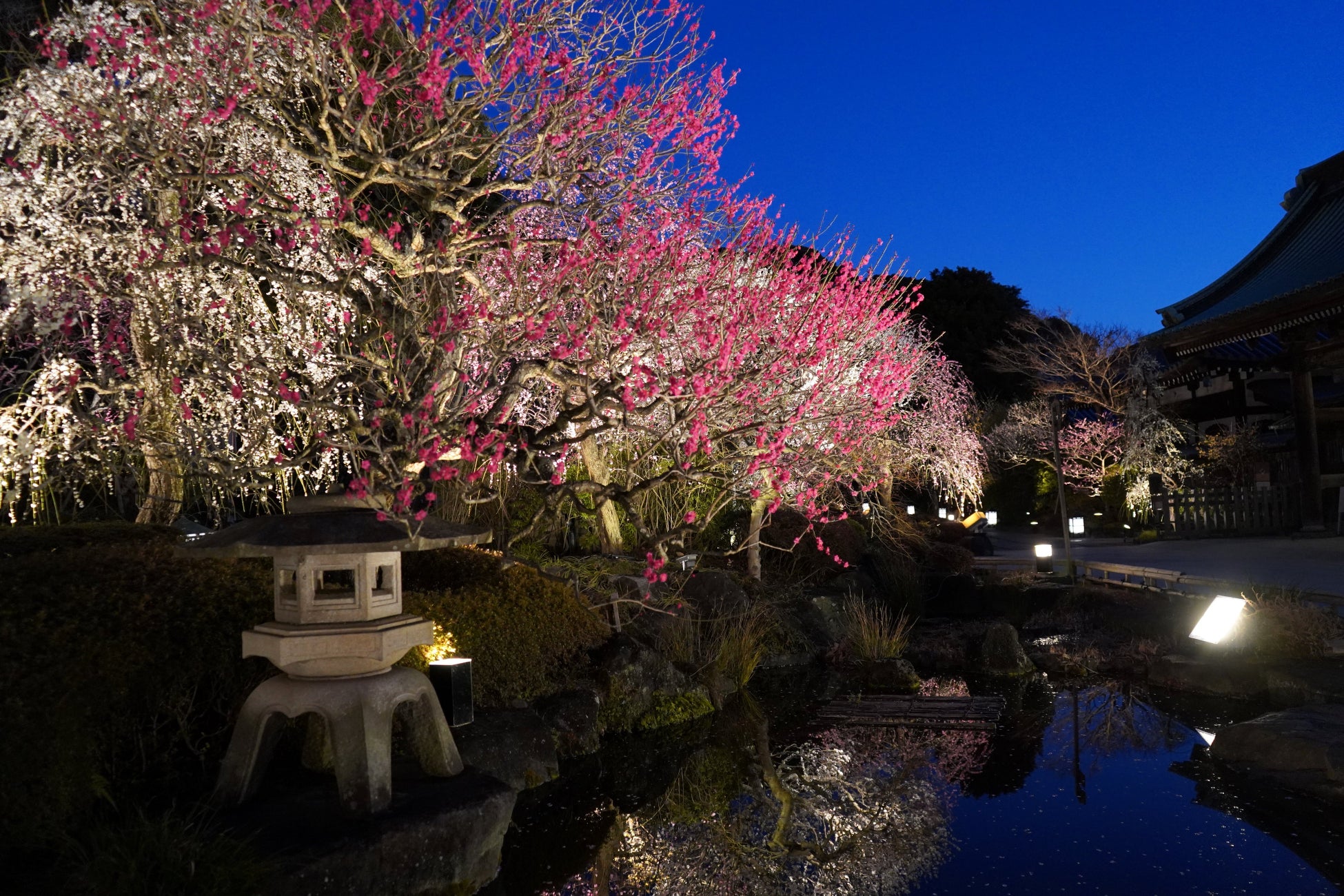 昨年、初の試みとして見頃を迎えた2月に試験的に実施いたしました【梅のライトアップ】が大変ご好評をいただいたこともあり、今年も2月中旬よりライトアップを実施予定です。