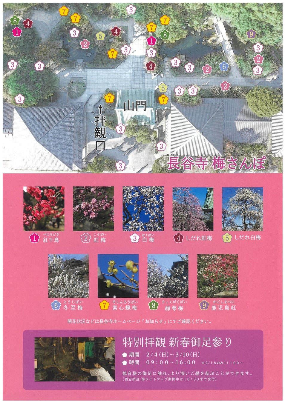 鎌倉長谷寺では梅の開花に合わせ、【夜間特別拝観・梅ライトアップ】と【新春御足参り(みあしまいり)】を実施いたします。