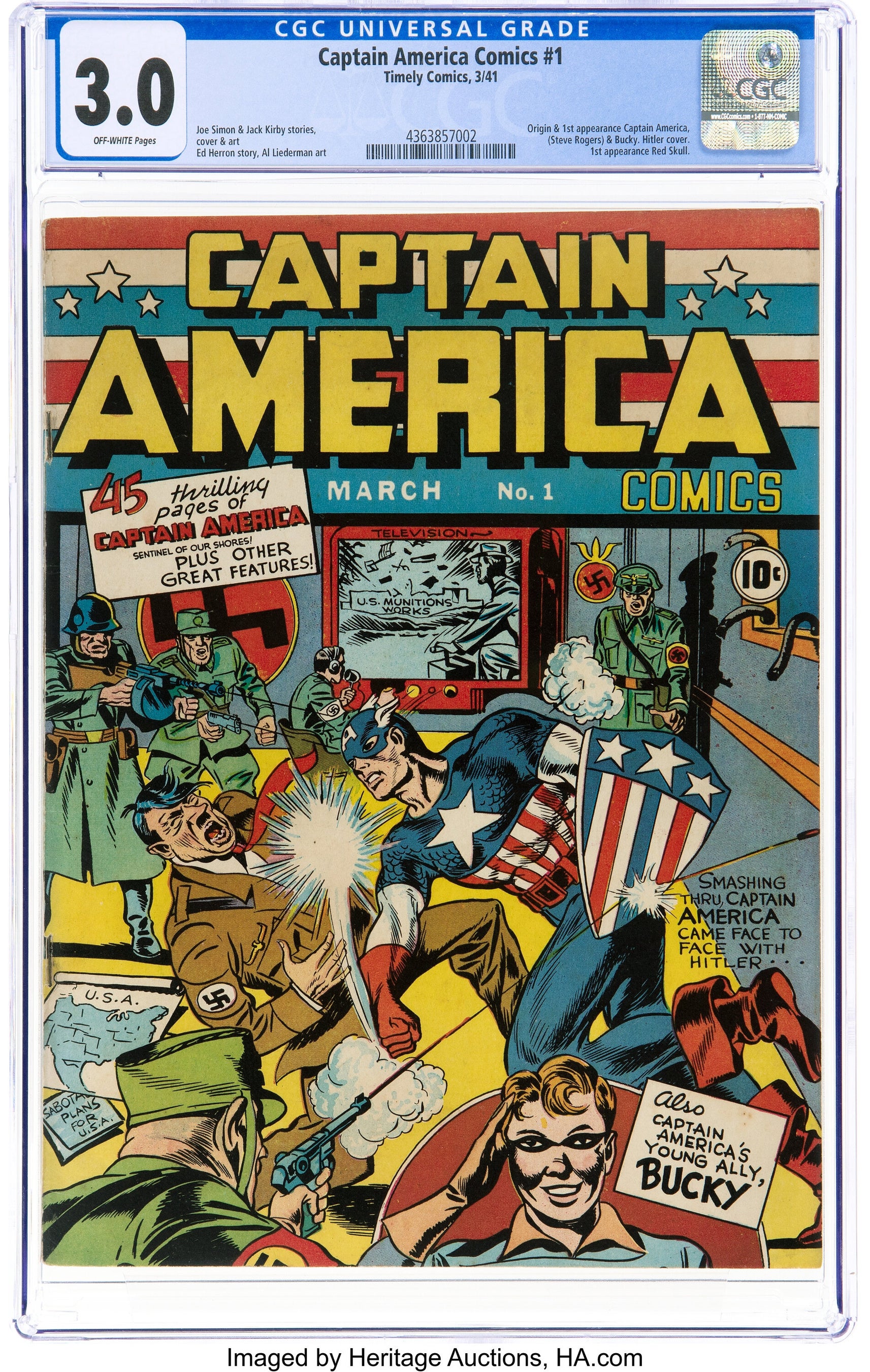 「キャプテンアメリカ」 コミックス、初登場号 (1951年、Timely)CGC GD/VG 3.0 オフホワイトページ