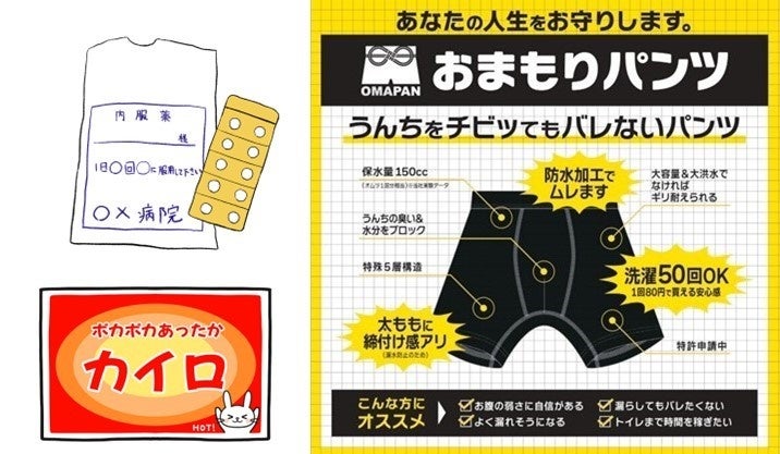実は、弊社代表は長年腸の難病(潰瘍性大腸炎)を患っており、同じような病気(※1)に悩んでいる友人もいます。だからこそ、「チビったら困る日に穿くパンツ」があれば良いのにと思い、開発したのがこの「OMAPAN」です。