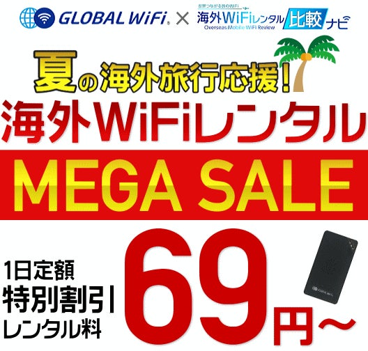 グローバルWiFi 夏の旅応援MEGAセール!1日定額69円より【海外WiFiレンタル比較ナビ】