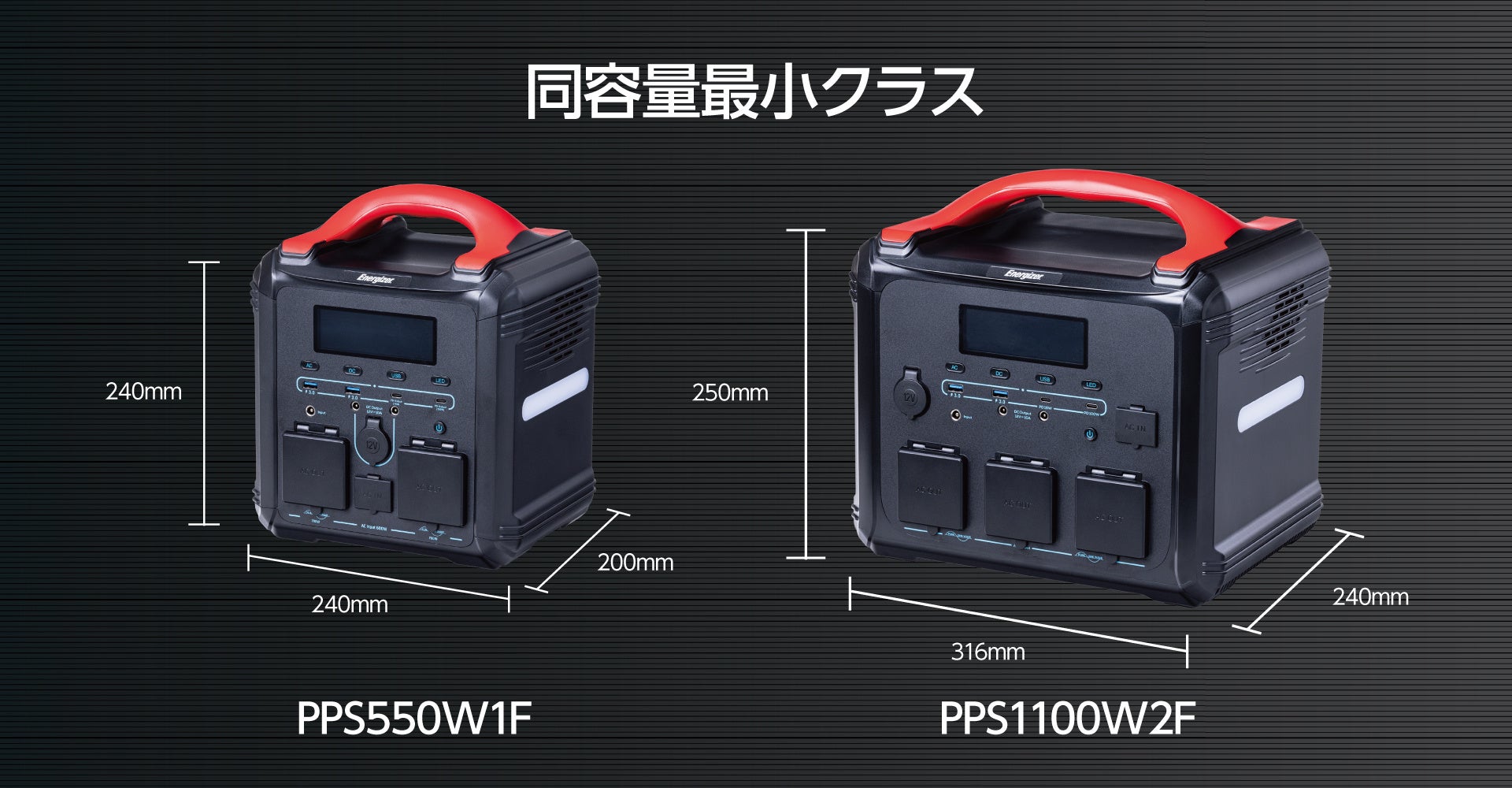 株式会社カンパーニュ(本社:東京都武蔵野市、代表取締役:中山太吾)は米国Energizer®の日本総代理店としてバッテリー容量1,102.5Wh、瞬間最大2,400Wの高出力/安定的に1,200Wの出力ができる大容量モデル「PPS1100W2F」、バッテリー容量551.25Wh瞬間最大1,400Wの高出力/安定的に700Wの出力ができる中容量モデル「PPS550W1F」を3月8日より全国の家電量販店及びインターネット通販サイトで販売を開始いたします。本製品に搭載されたバッテリーは現在ポータブル電源の主流であるリン酸鉄リチウムイオン電池のアップグレード版である次世代リン酸マンガン鉄リチウムイオン電池を日本で初めて搭載したポータブル電源です。リン酸マンガン鉄リチウムイオン電池の特徴は「発火・爆発しにくく安心・安全」「3,000回以上の充放電可能で10年使える長寿命」「電池のエネルギー密度が高く同容量帯で世界最小クラスのコンパクト設計」「環境に優しいリサイクル可能な電池」などがあります。