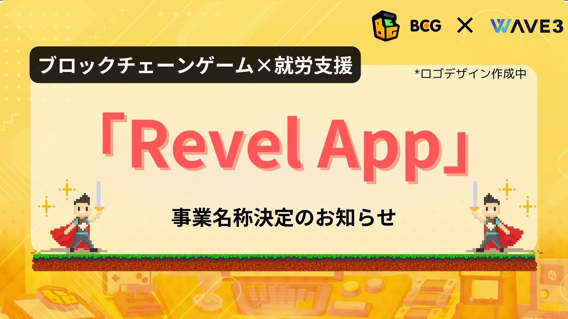 BCG株式会社(本社:東京都武蔵野市、代表取締役社長:横田 昇吾、以下「BCG社」)は、株式会社WAVE3(本社:東京都千代田区、代表取締役:近藤貴司、以下「WAVE3」)【株式会社CoinPost(本社:東京都千代田区、代表取締役:各務貴仁)とWellsTech株式会社(本社:東京都板橋区、代表取締役:平山翔大)のジョイントベンチャー】と共同開発を進める「ブロックチェーンゲーム×就労支援」のプロダクト名称を「Revel App(レベルアップ)」に決定したことを発表いたします。