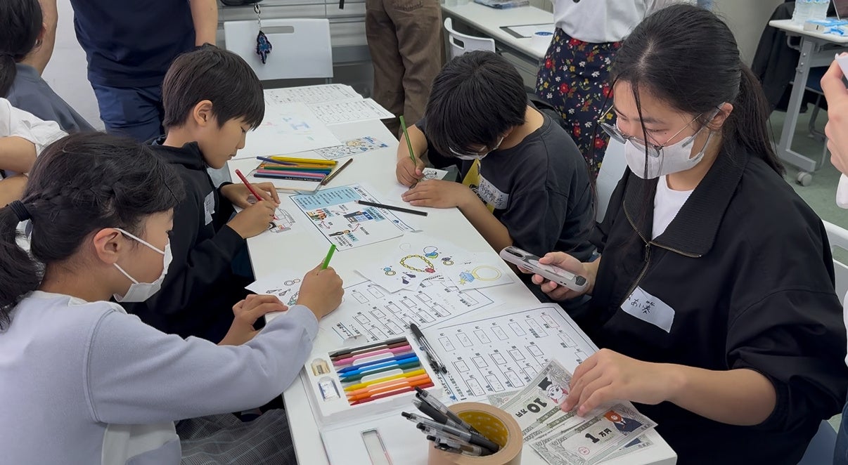 中高生が“店長”としてチームをリードし、小学生たちが“従業員”として仕入れ・商品生産(塗り絵)・ディスプレイ・接客・値引き交渉などの役割を分担。