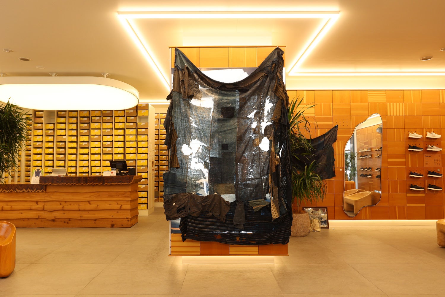 サスティナブルなシューズを扱うAllbirdsには、「循環」をテーマに、遠藤薫が藍染の布や羊毛、絹などを用いたインスタレーション作品を展示します。