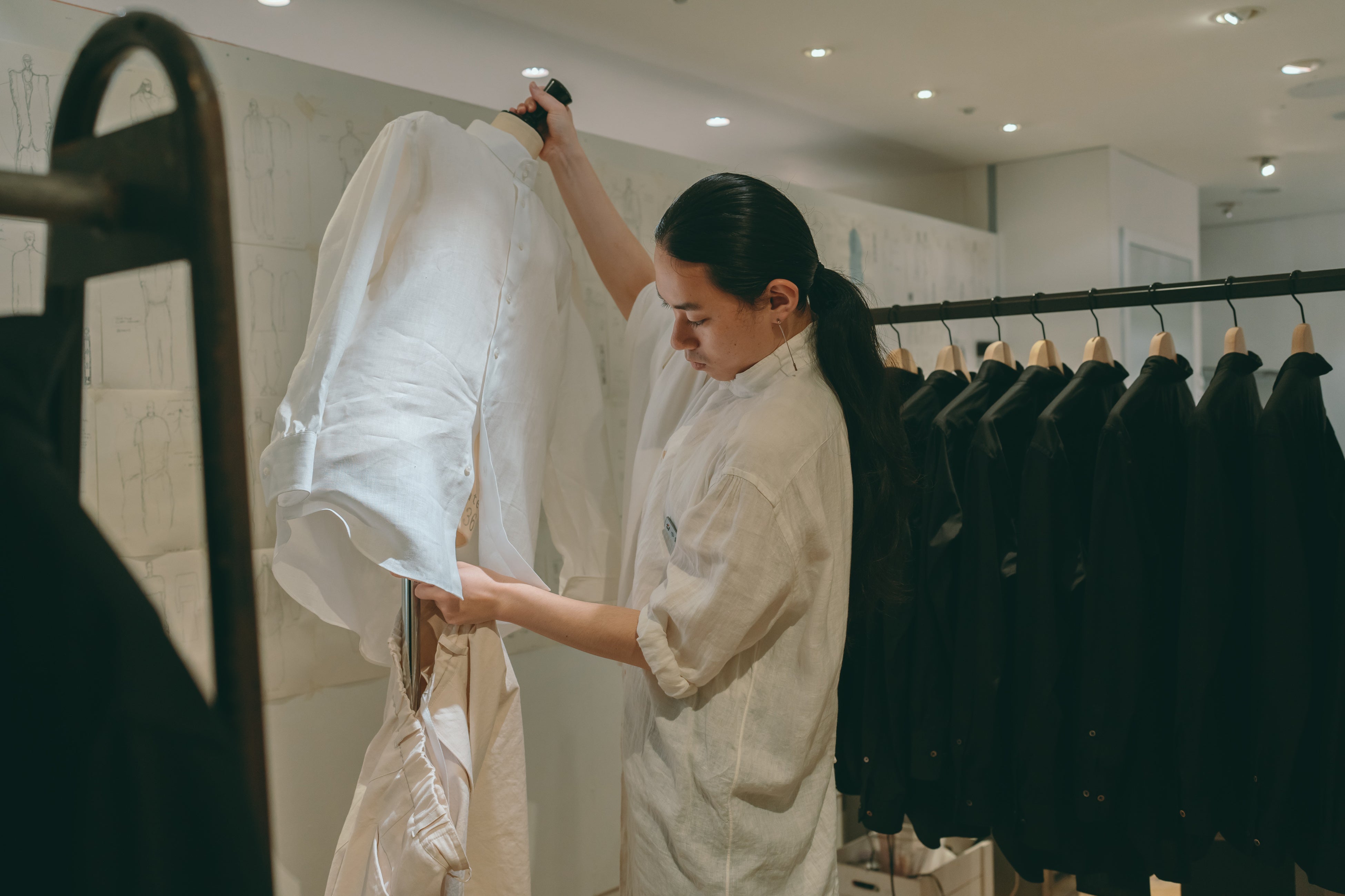 私たちのクリエイティブな姿勢は、既存のスタンダードな形を脱構築し、さらにブラッシュアップして普遍的な服を作り出すことです。