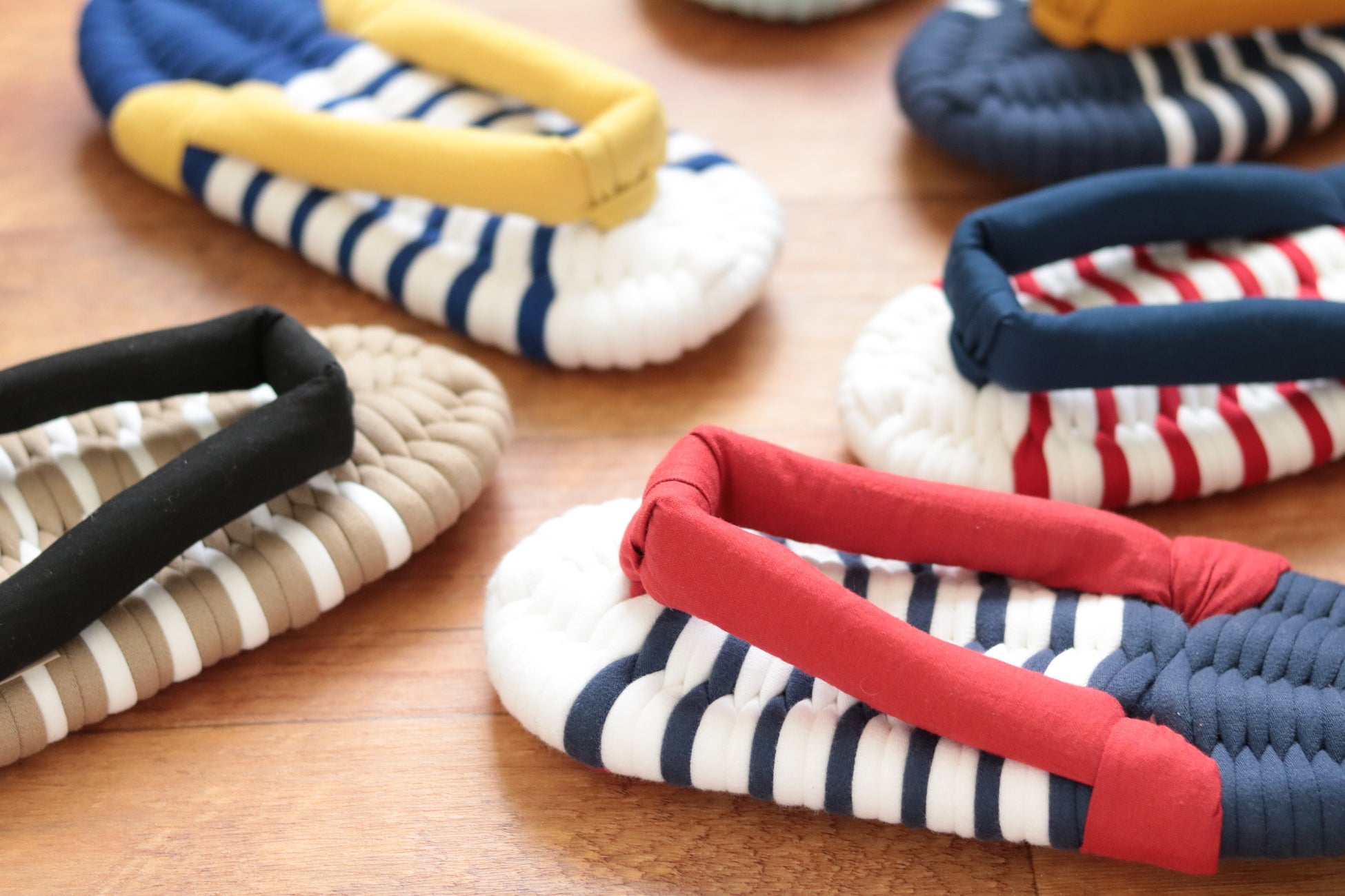 【素材】土台:綿ニット、PPロープ 鼻緒:綿シーチング、PPテープ