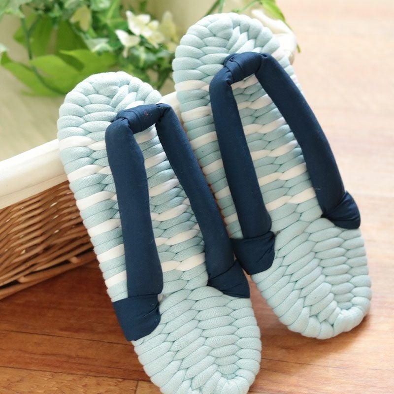 布ぞうりは、布で編み上げた室内履き。
